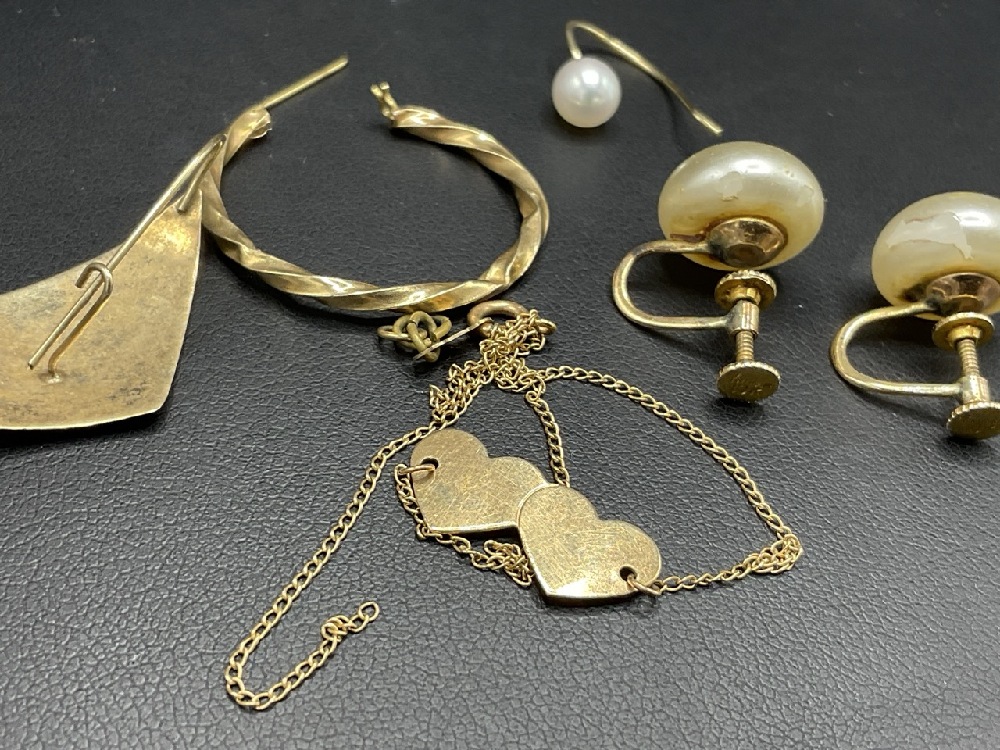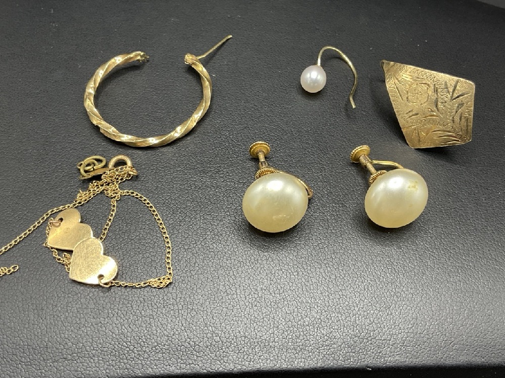 14K Estate Compiled Scrap or Use Gold with 10K Trifari Crown Faux Pearl Earrings.