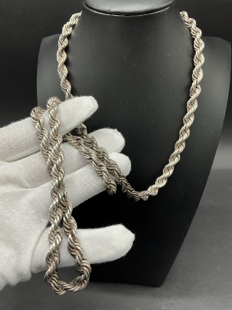 Heavy Signed Vintage Taxco 34" Sterling Silver Necklace.