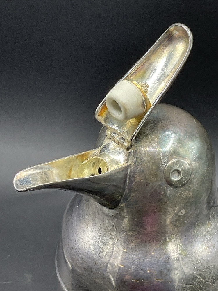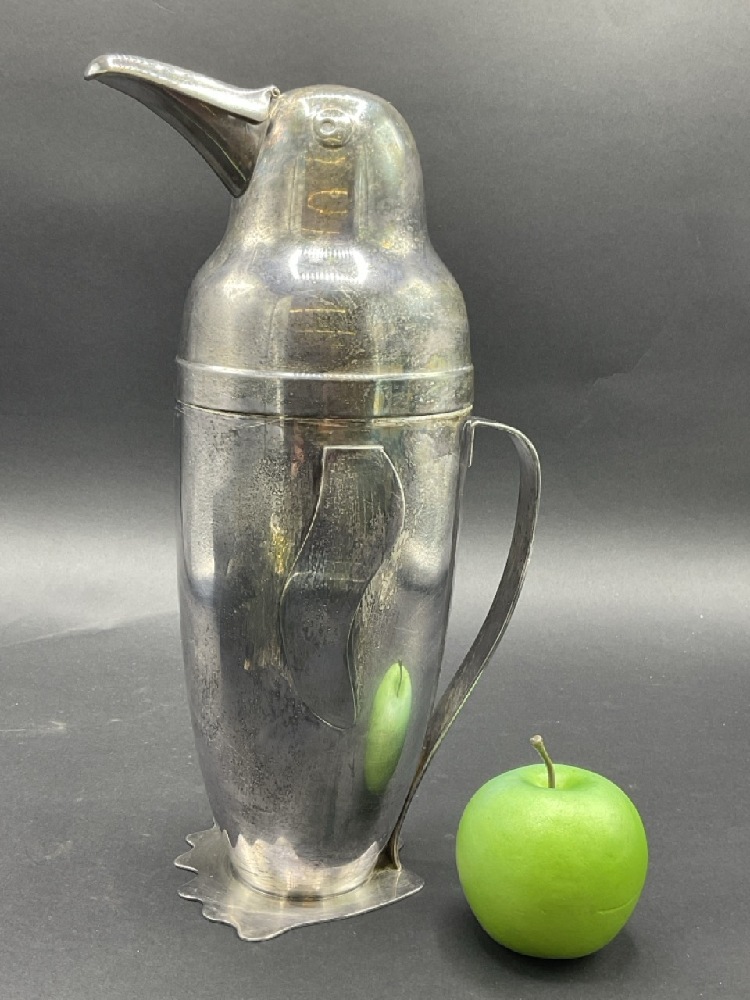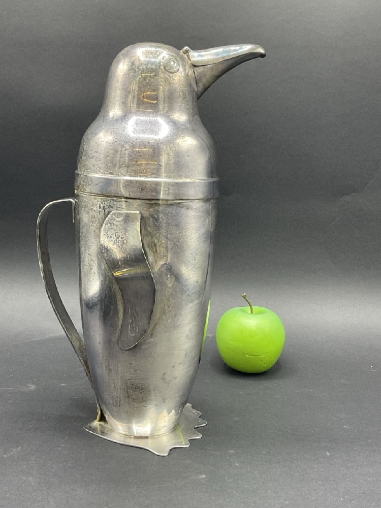 1930's Art Deco Napier Penguin Cocktail Shaker. Signed at base with patent number. Shaker is Silver Plated with tarnish present. Cleaning needed. Interior is very clean and has very little to no use noted. Please see photograph preview.