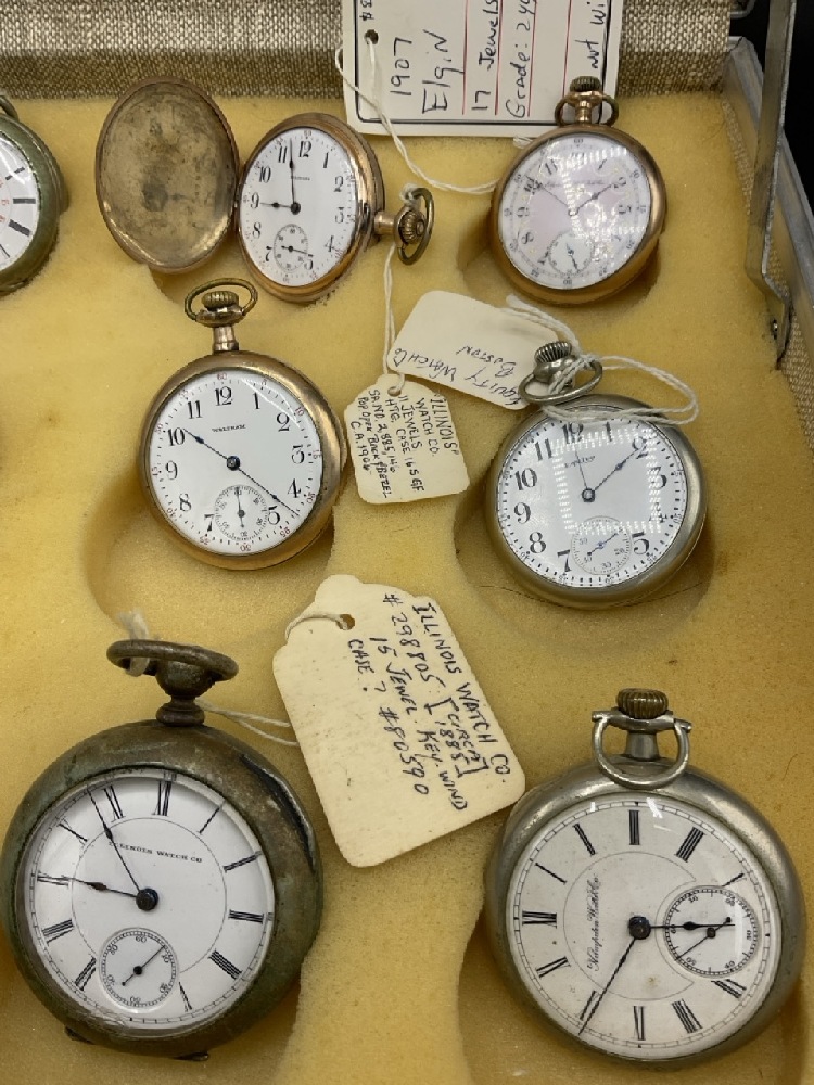 Including: Elgin, Illinois, Knickerbocker, American Watch Co. New York Standard, Equity, Longines, Hampton, Waltham As is