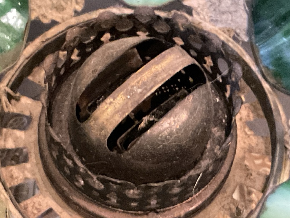 Condition: Frame for the slate glass pieces is bent in one area.