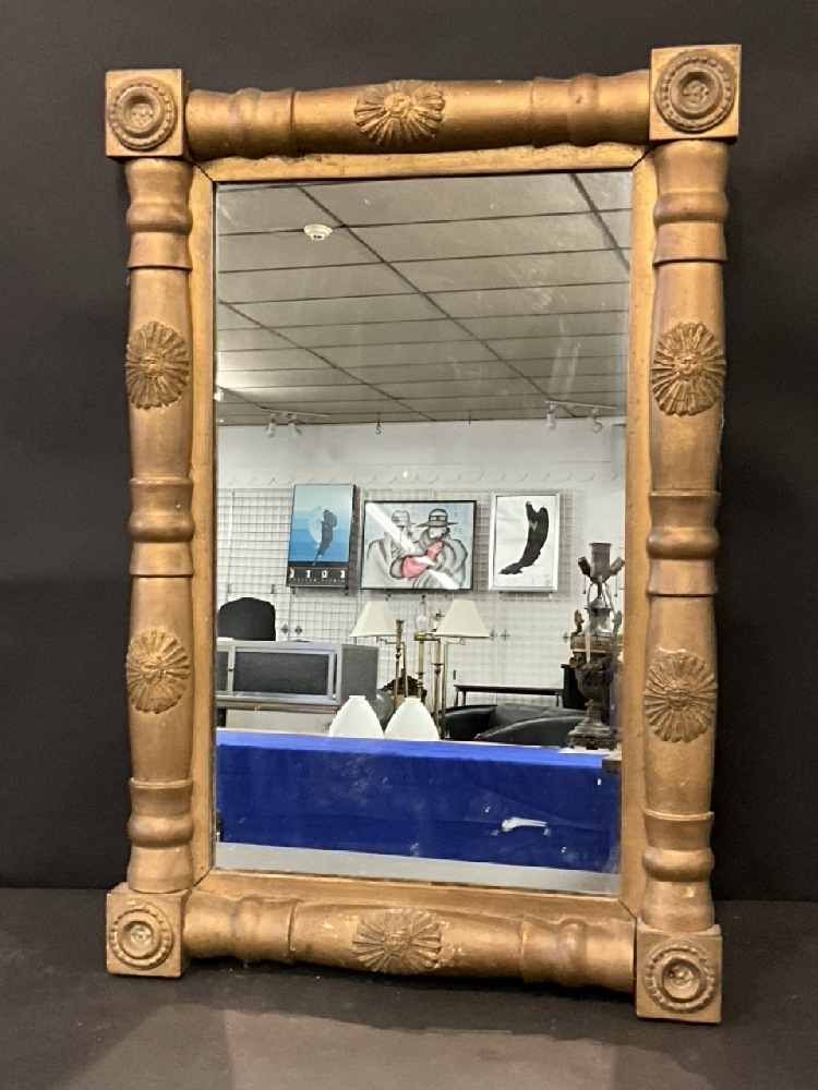 Antique Federal Reverse Painting Glass Gold Gilt Mirror.Dimensions: 25” x 17”