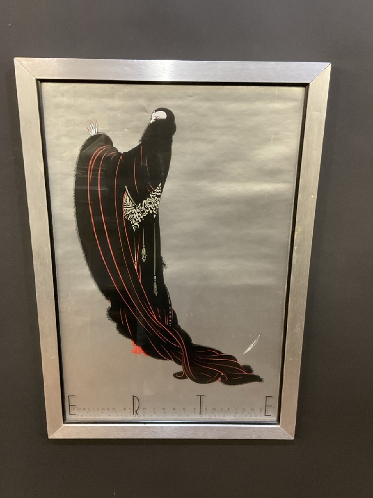 1980 Erte Art Deco Revival Serigraph Poster "Erte Soiree". Housed in period matching silvered finish frame.