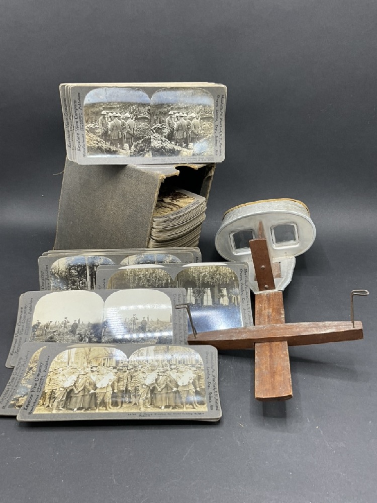 Antique Stereoscope Viewer W/ a WWI Keystone View Company Stereograph Collection