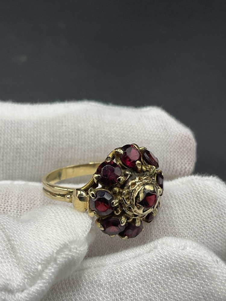 14K Yellow Gold Garnet Ring.