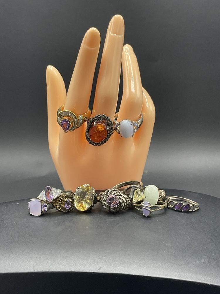 Estate Compiled Sterling Silver Gemstone Rings