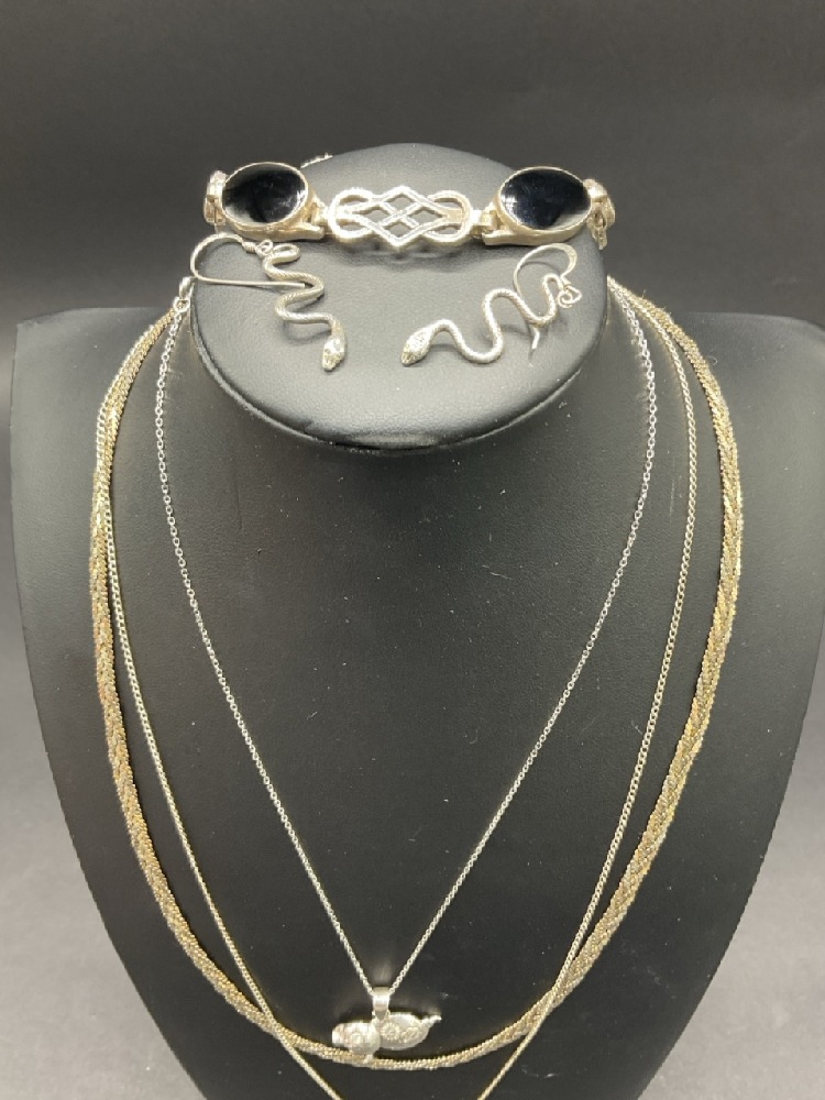 Sterling Silver Necklaces, Bracelet,and Earrings.