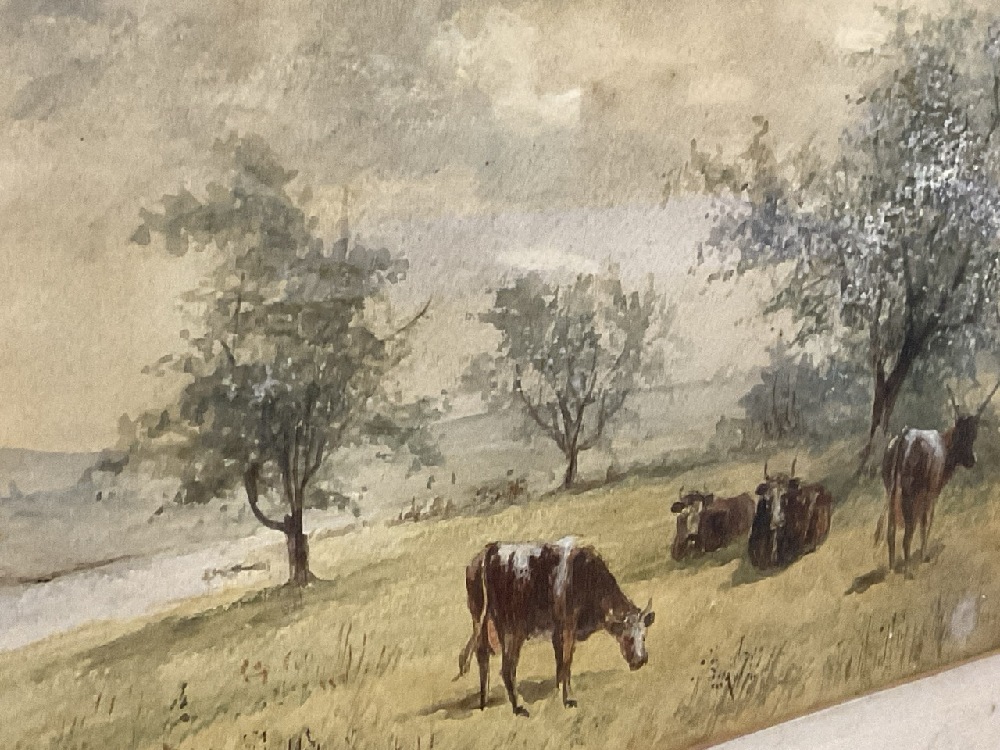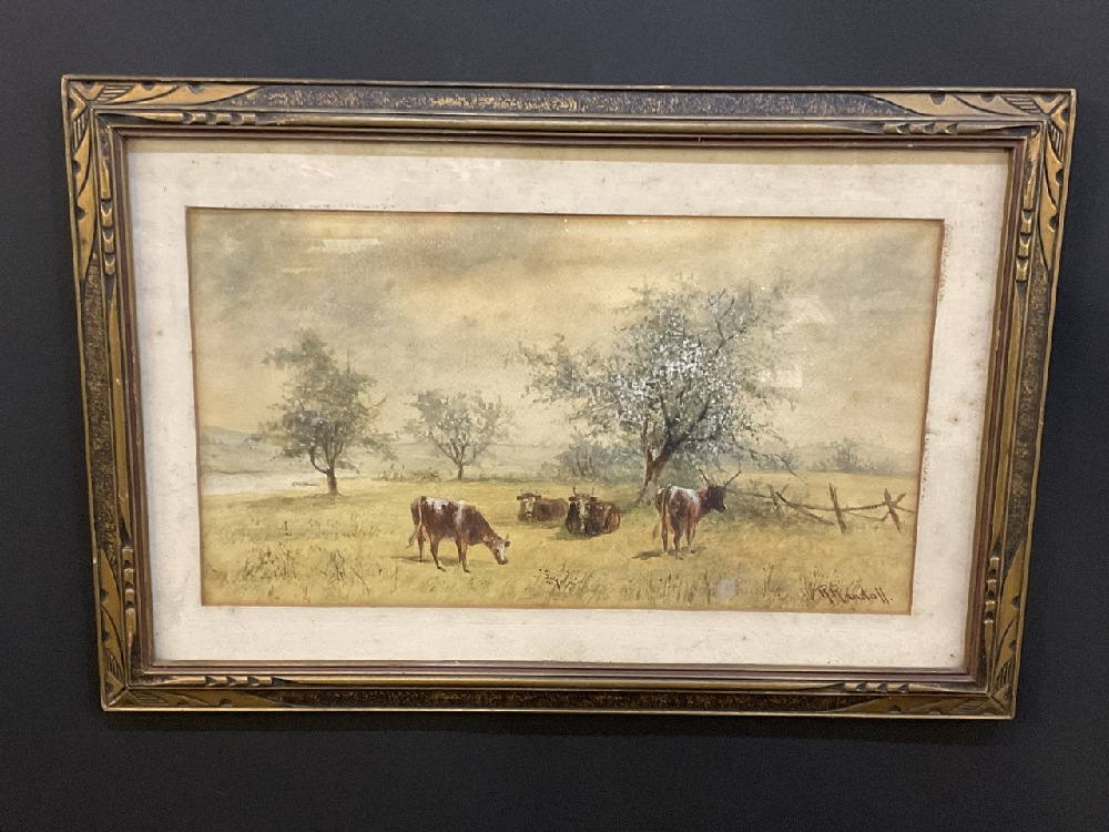 Cows in Pasture Watercolor Signed R. Randall.