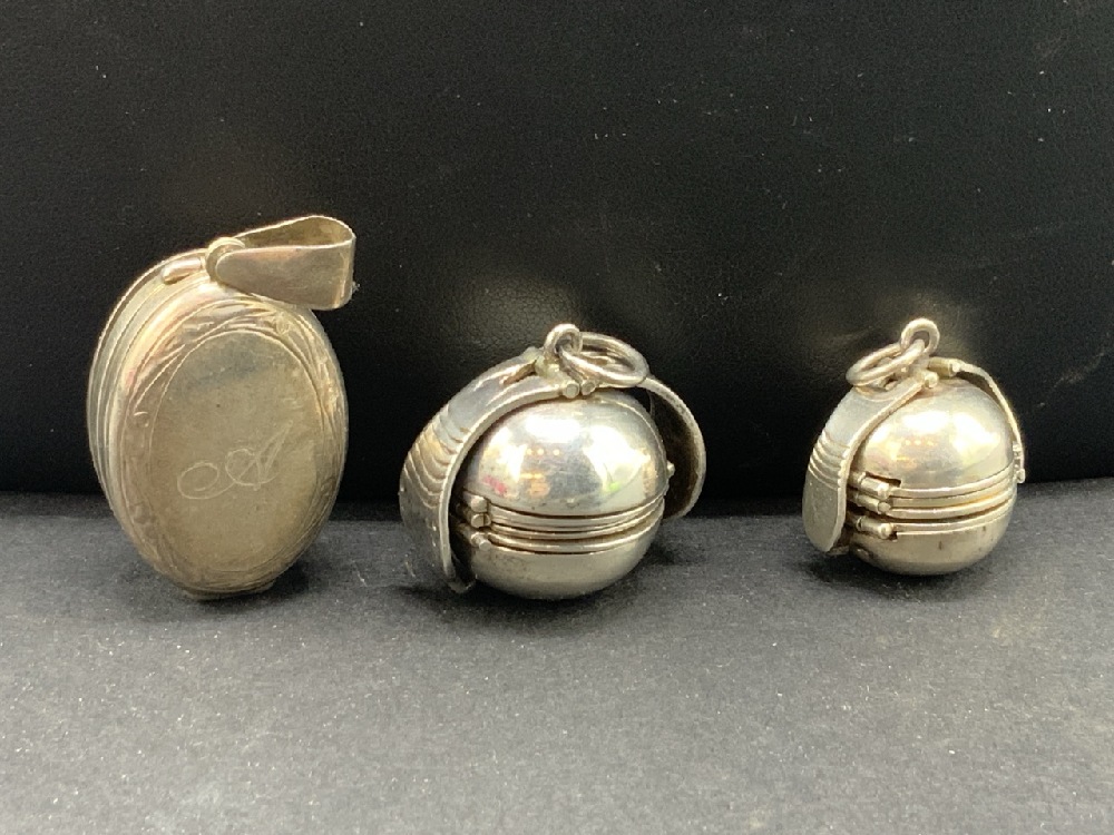 Three (3) Sterling Silver Vintage Collapsible Locket Pendants.