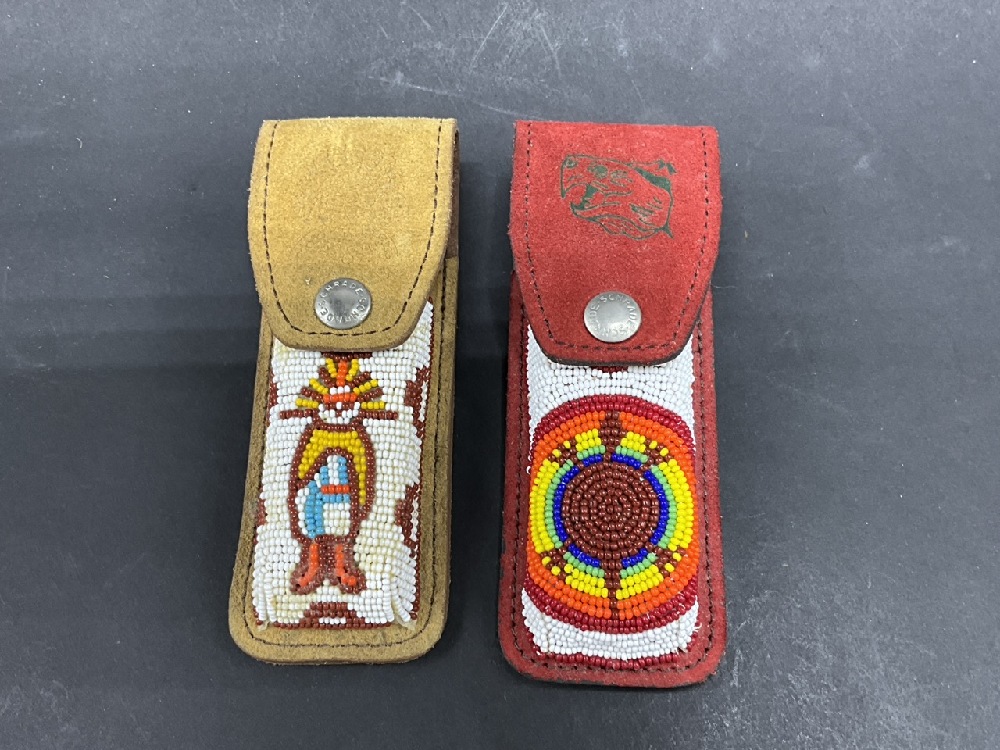 Lot of (2) Schrade Scrimshaw Prototype Knives w/ Sheaths - Limited Edition Models. No number on the Kachina scrimshaw.