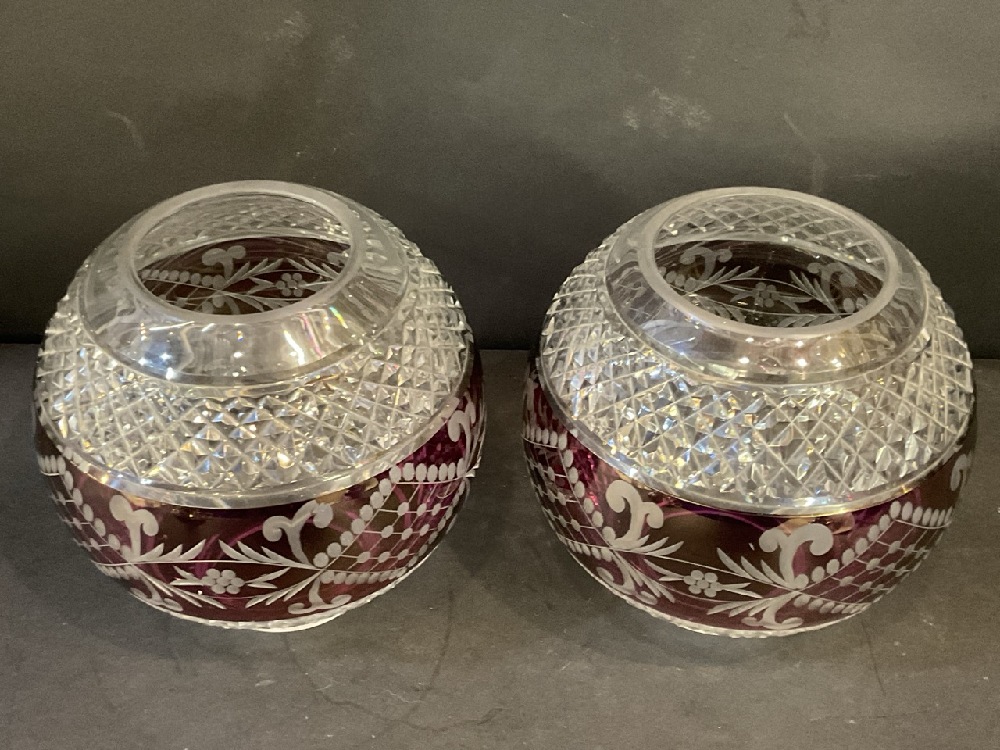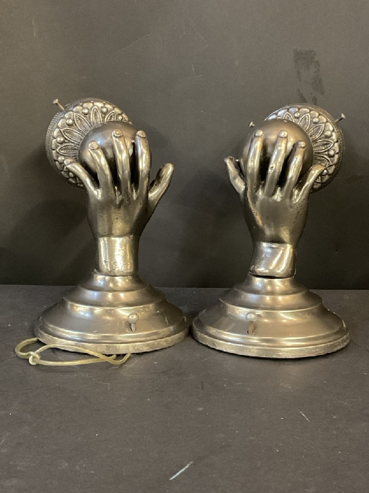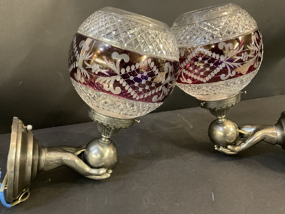 Quality Hand Holding Torch Wall Sconces with Cranberry Crystal Shades.