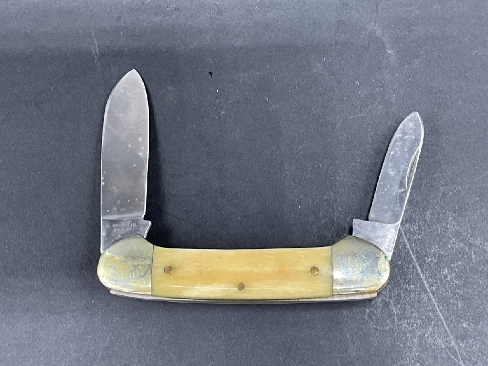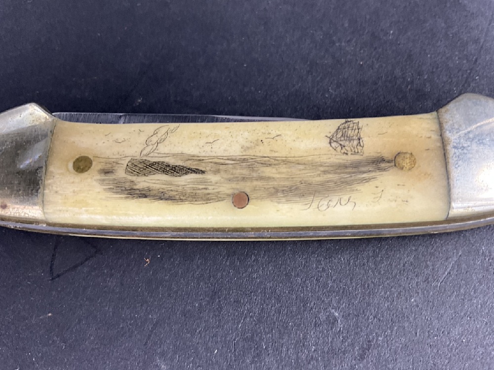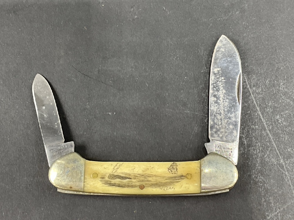 George Wostenholm IXL Sheffield, England Bone Scrimshaw - double blade folding knife.
