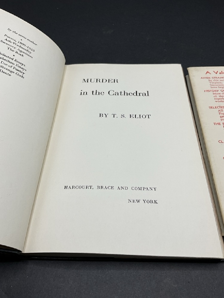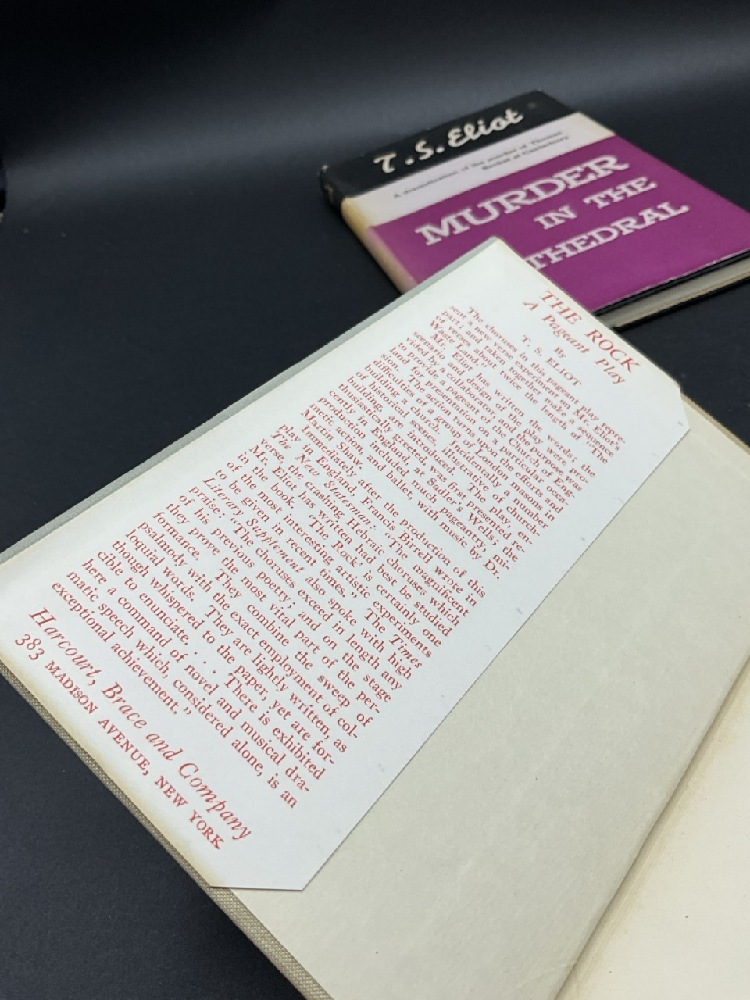 Eliot, T.S.: The Rock, A Pageanut Play and Murder at The Cathedral. 1st Editions 1934 and 1935 with Dust Jackets.