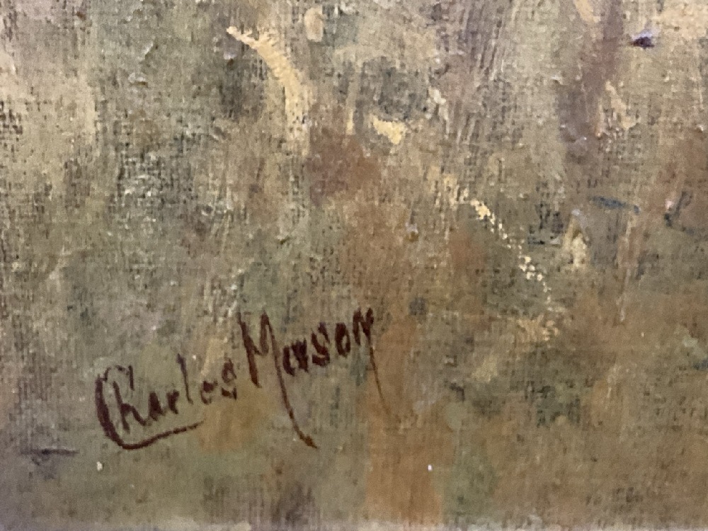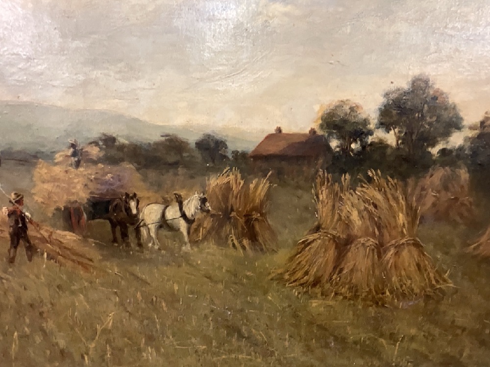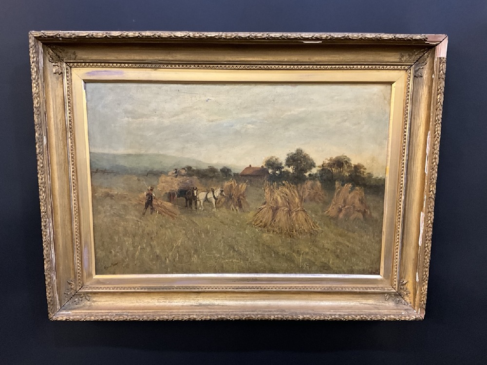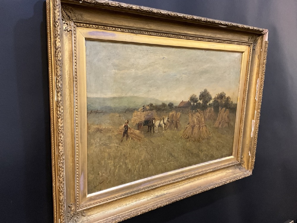 Charles Mason Oil on Canvas Wheat Harvest Painting.