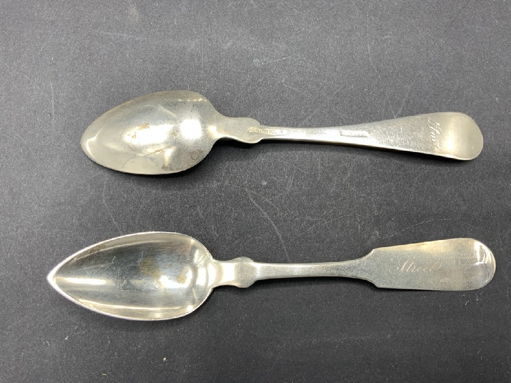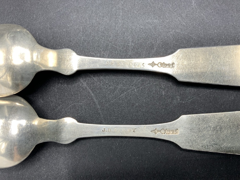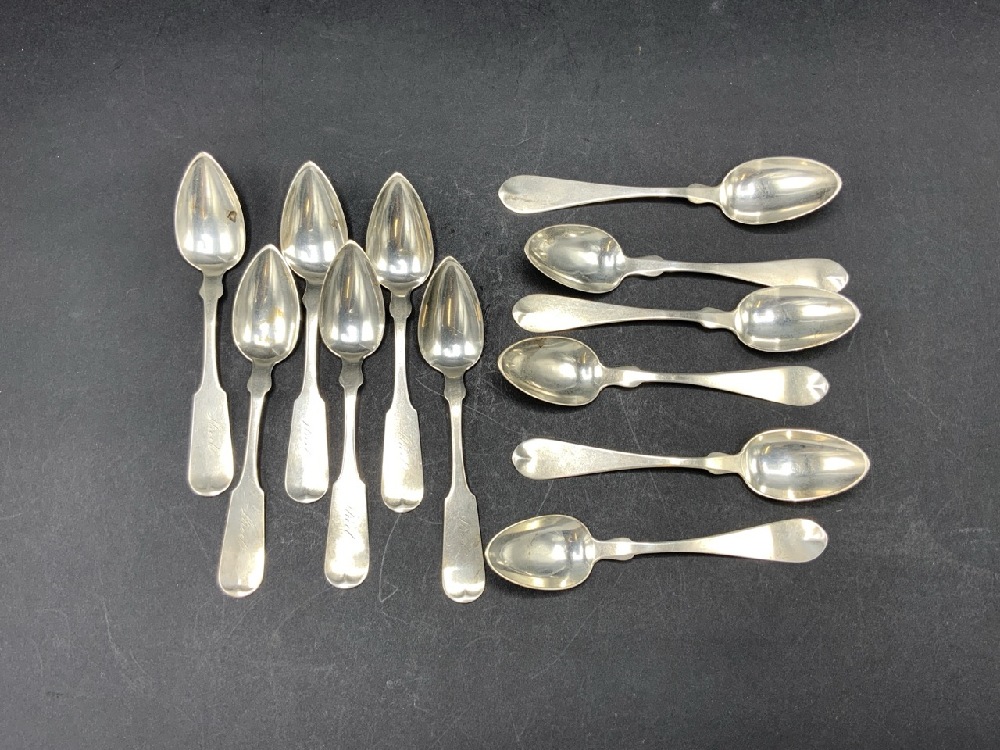 Twelve Coin Silver Spoons (6) A. Sanborn (6) J.B. Kirby