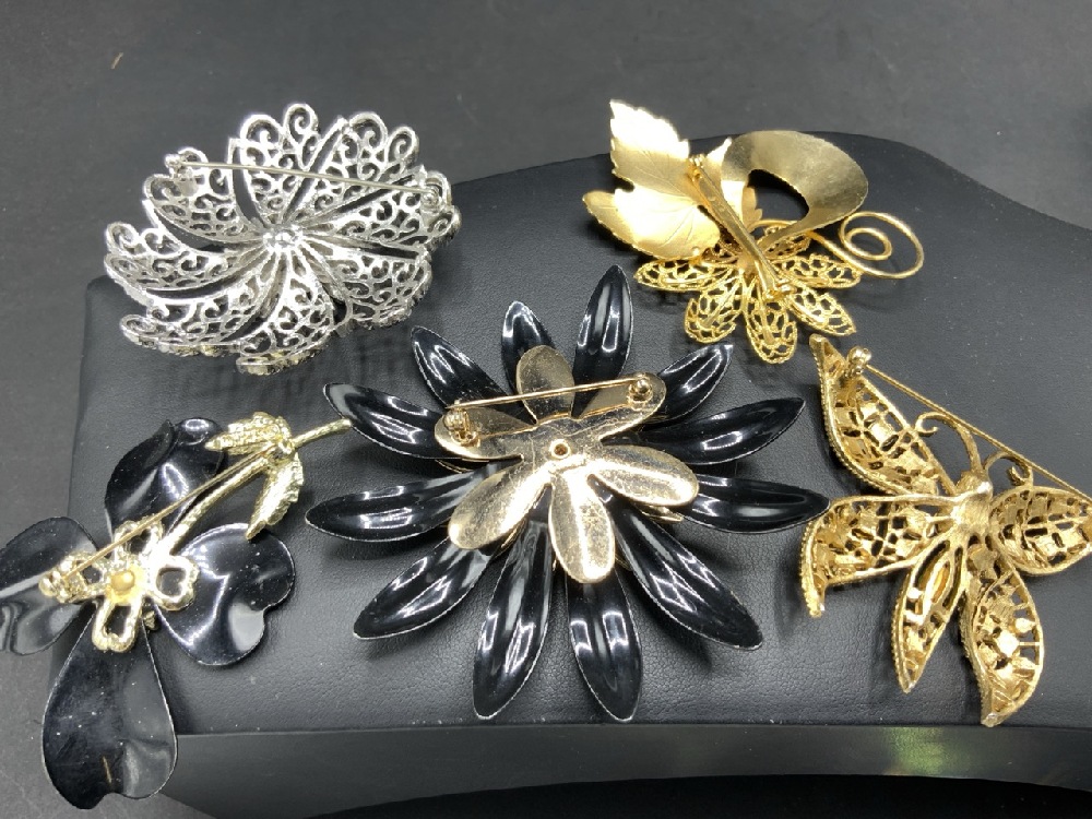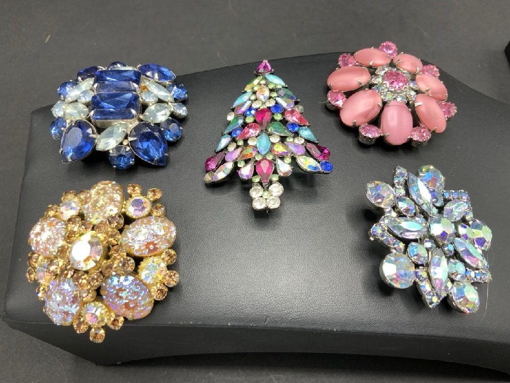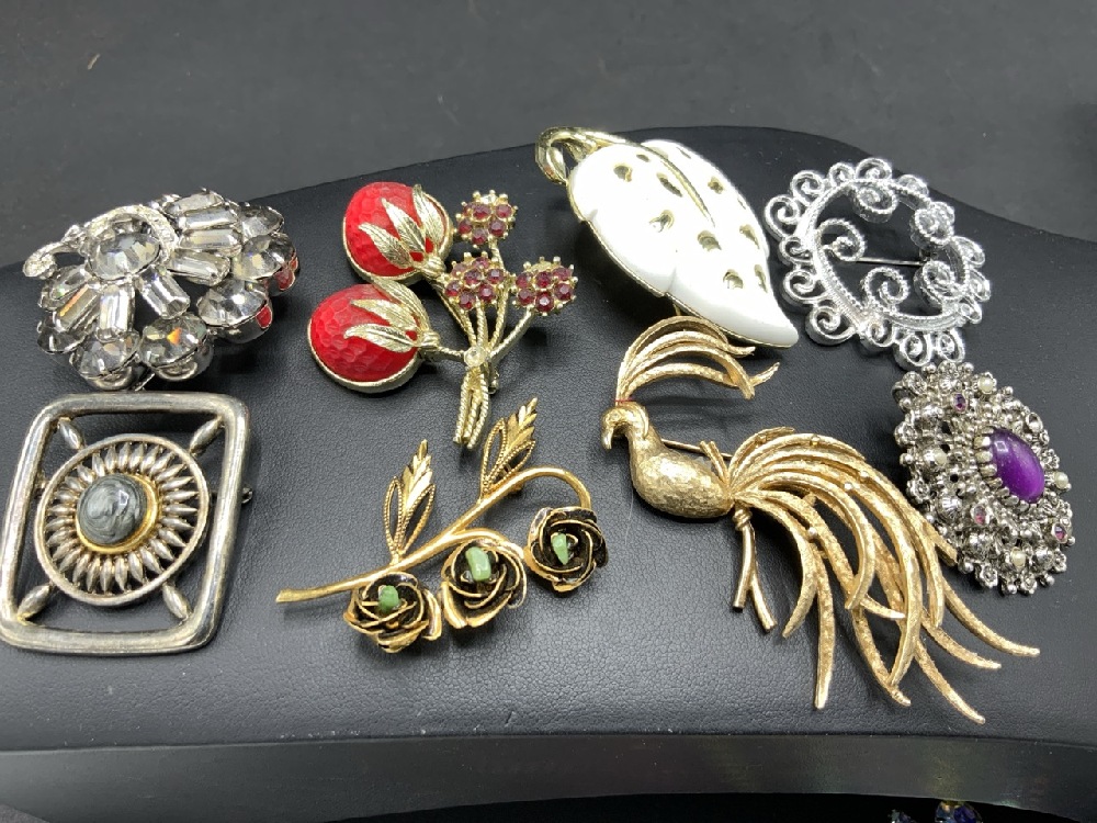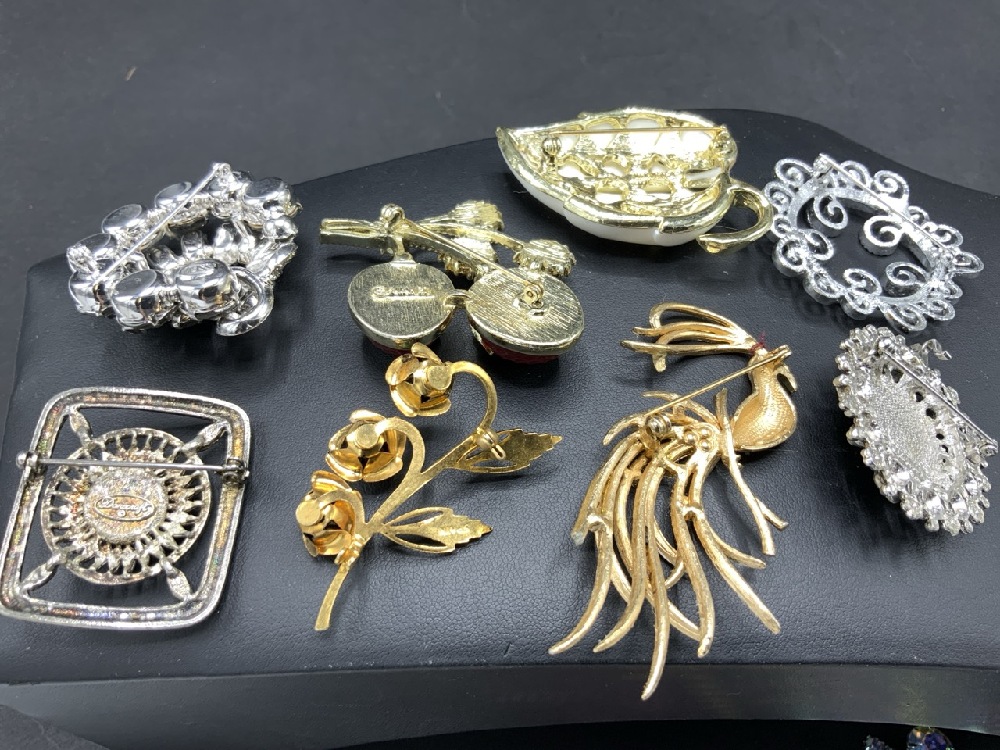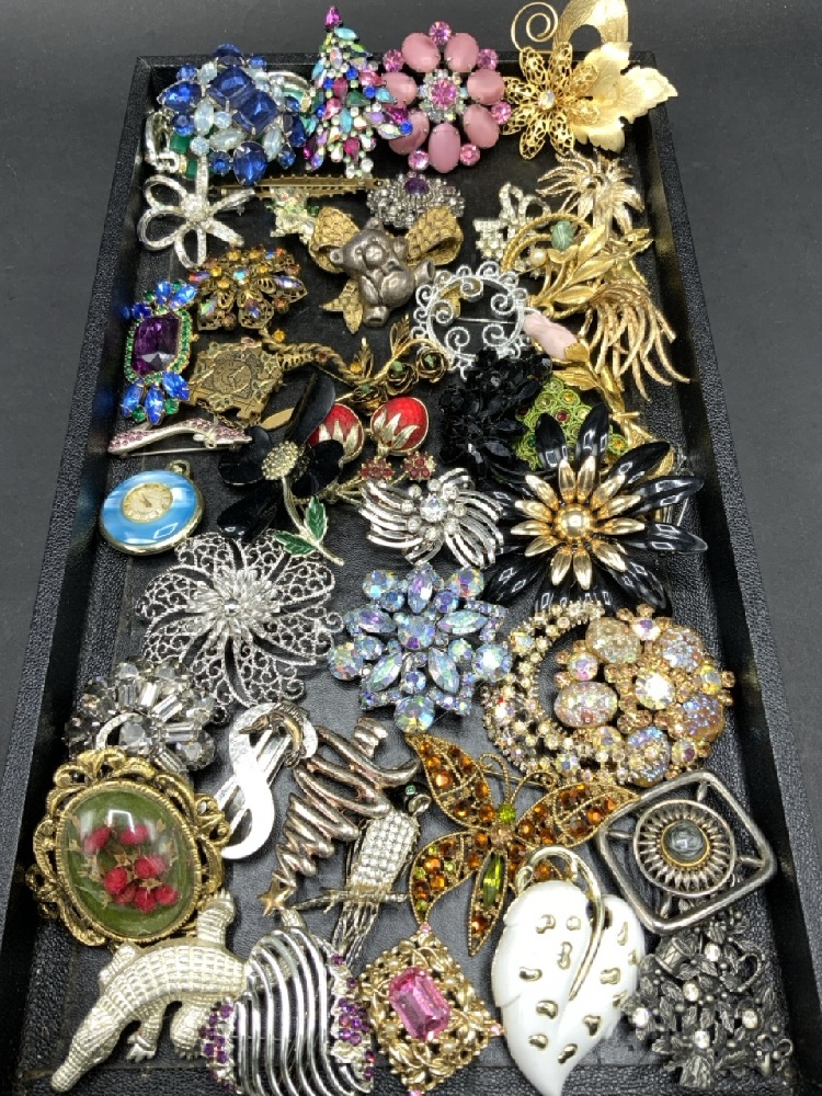 Compiled Vintage Costume Jewelry Brooches and Pins with Weiss,Danocraft, Sarah Coventry etc.
