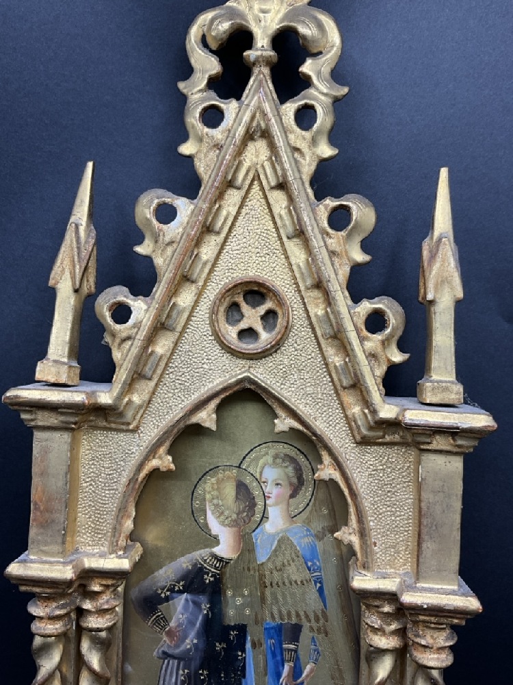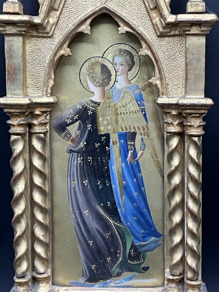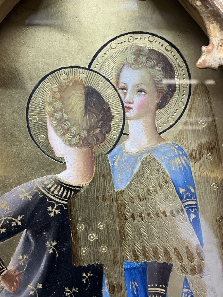 Angels Tempera in Wood with Gold Gilt Frame.