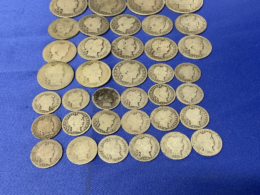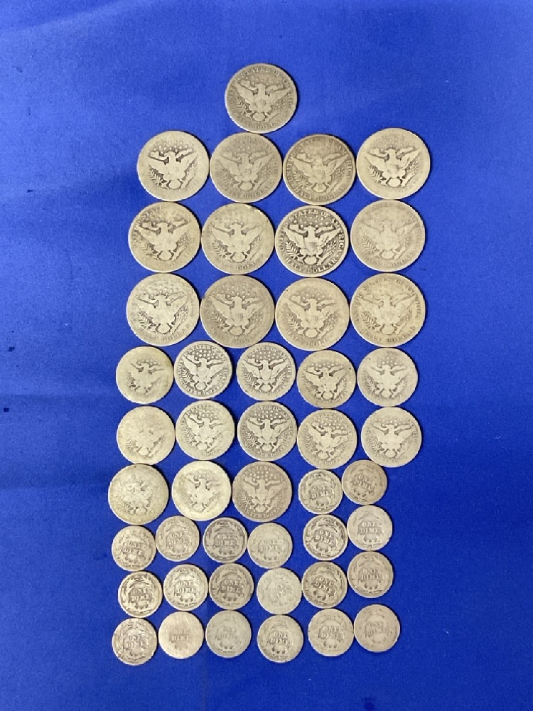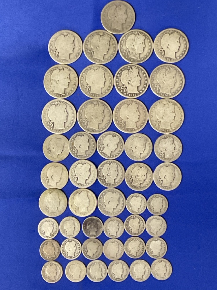 $11.75 Face Value U.S 90% Silver Barber Coins, Halves, Quarters & Dimes.