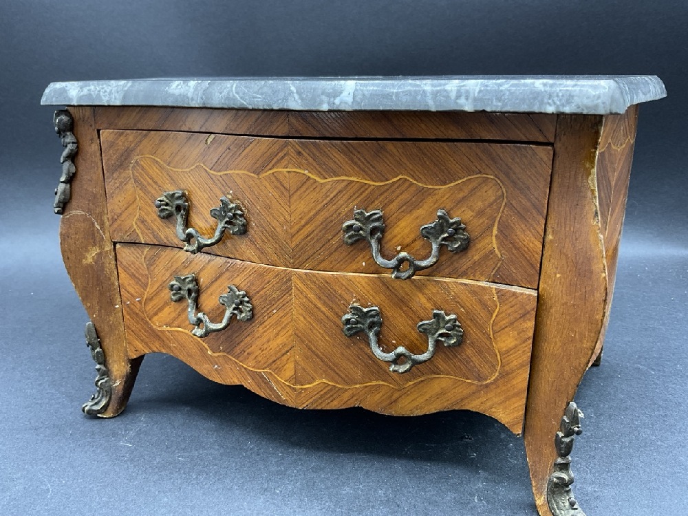 French Vitrine Miniature Chest w/ Marble Top.