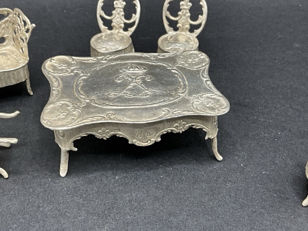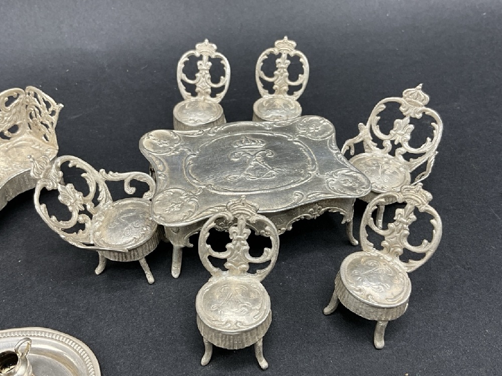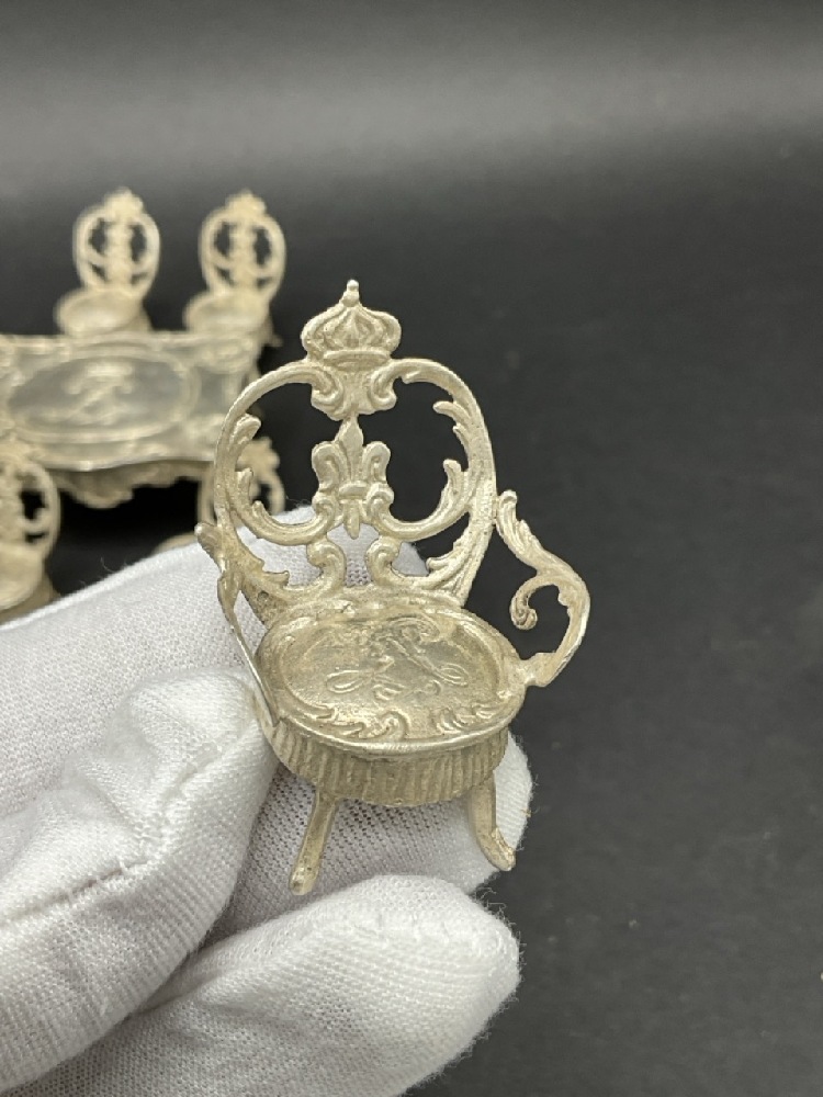 Antique Continental Silver Miniature Dollhouse Furniture.