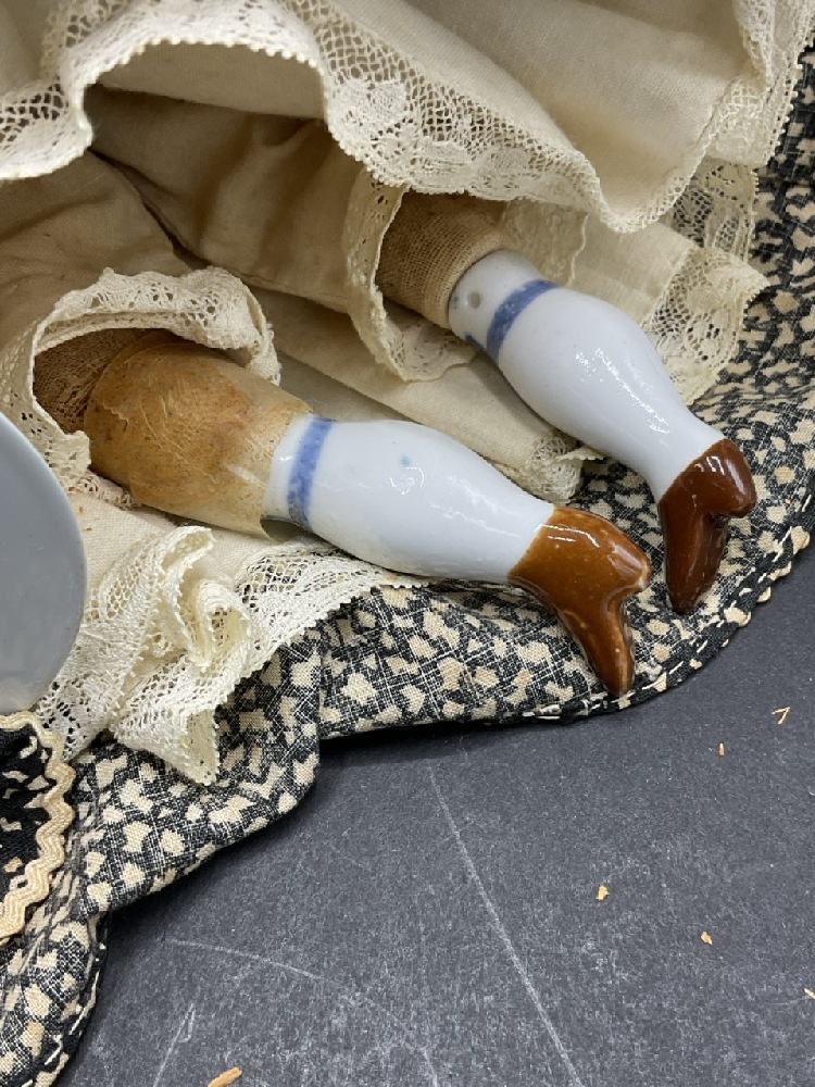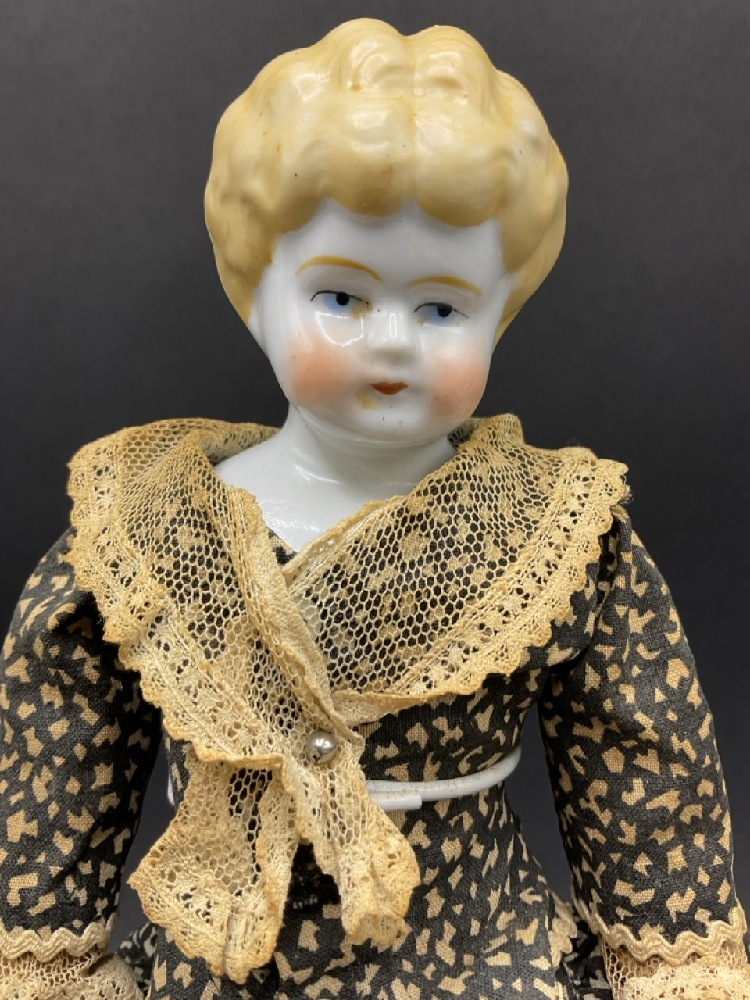 19th Century China Head Porcelain Doll w/Blonde Hair.