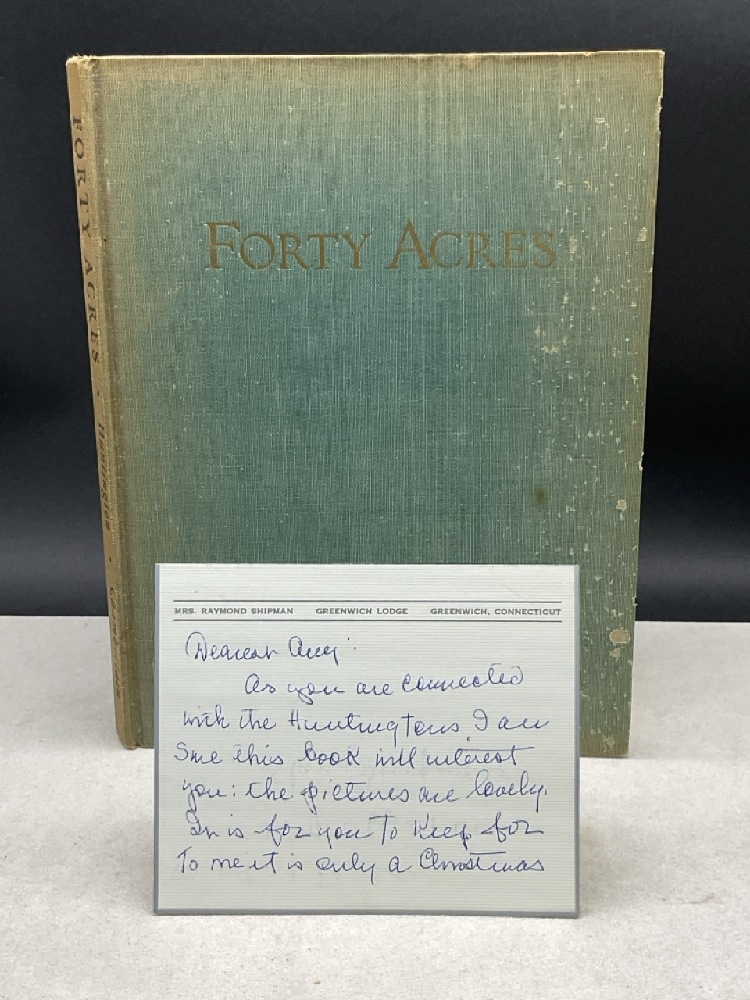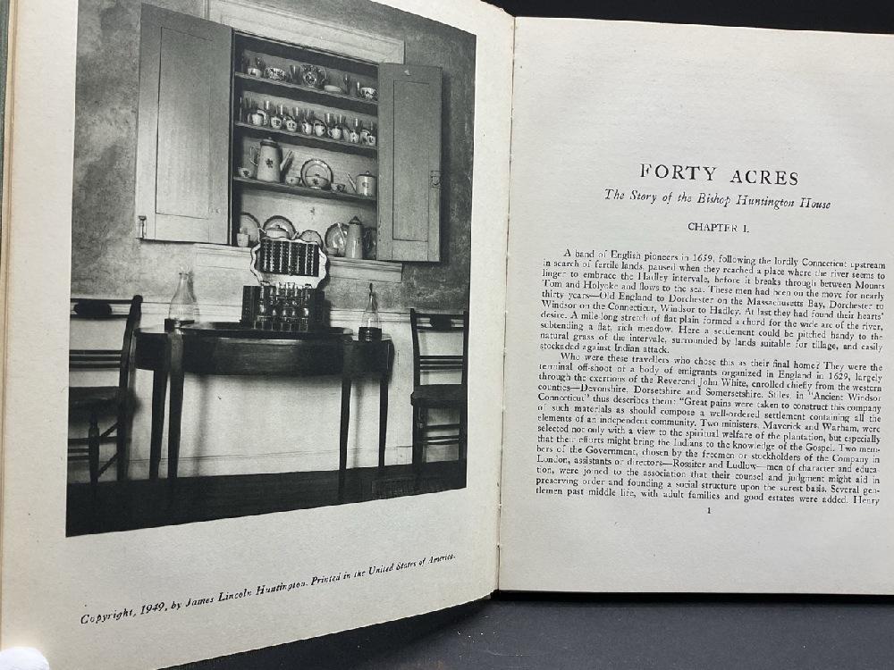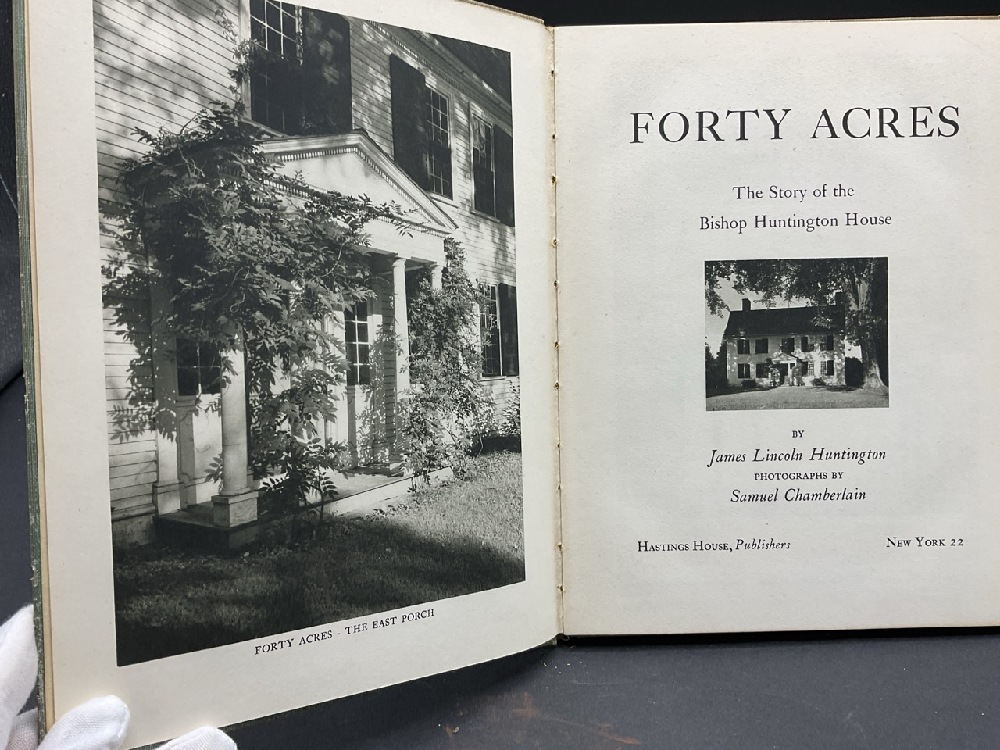 Huntington, James Lincoln: Forty Acres The Story of the Bishop Huntington House Signed by the Author. Located in Hadley Massachusetts. Published by Hasting House New York 1949. Photographs by Samuel Chamberlain.