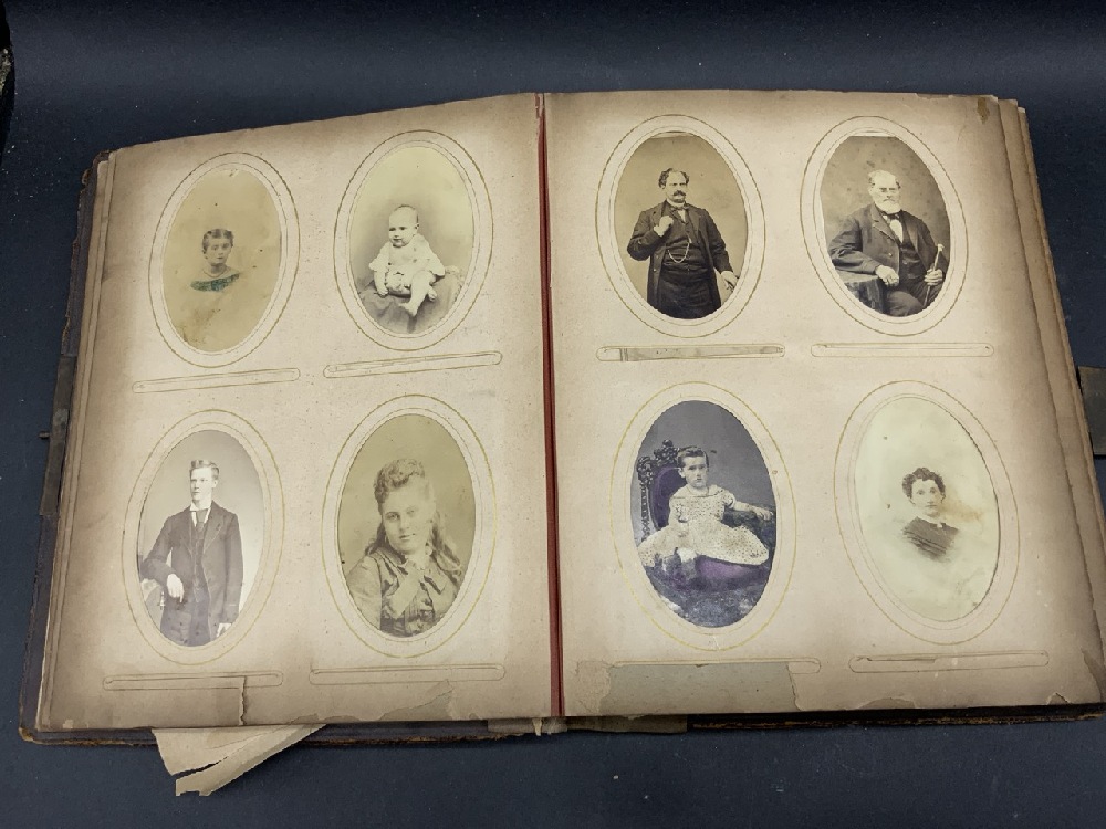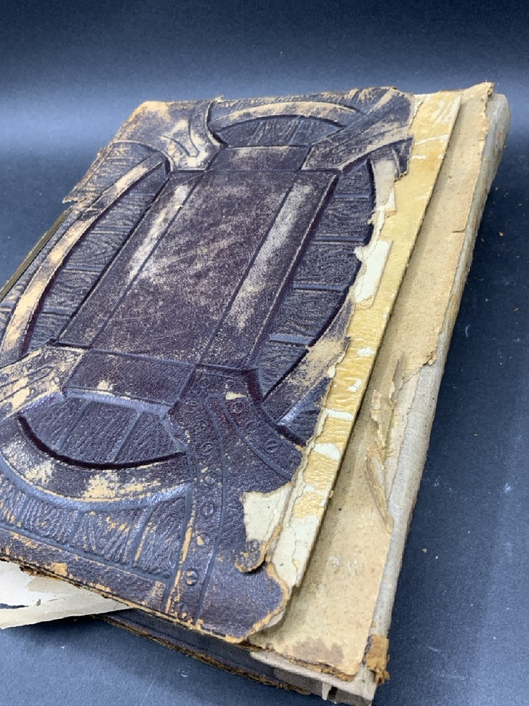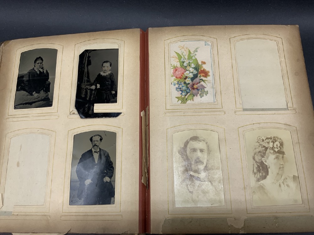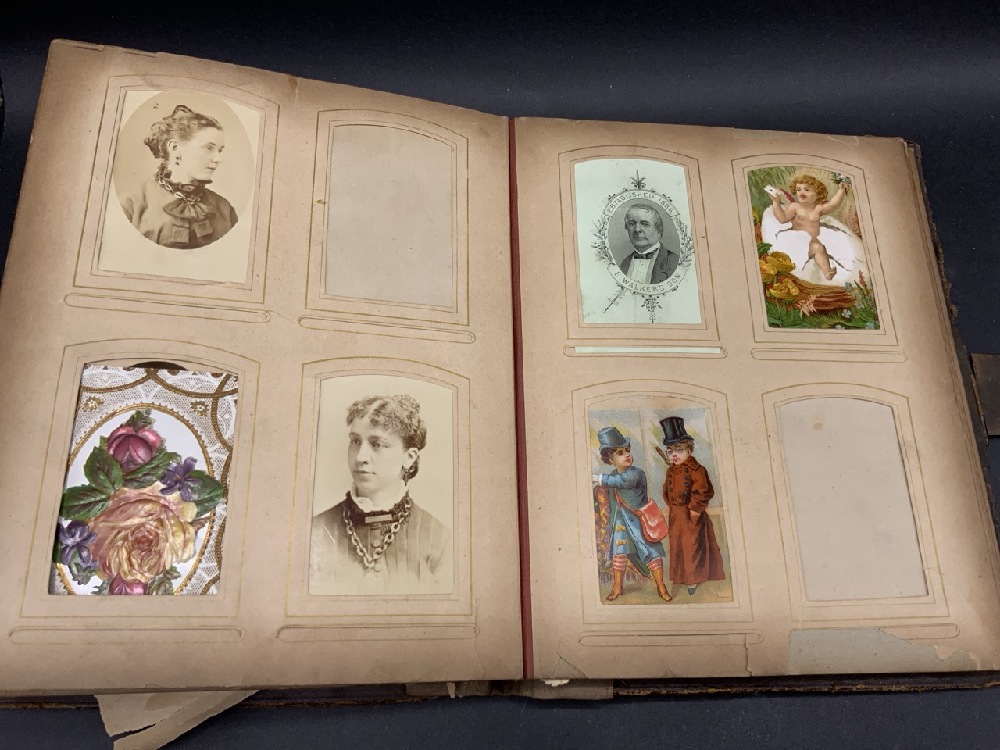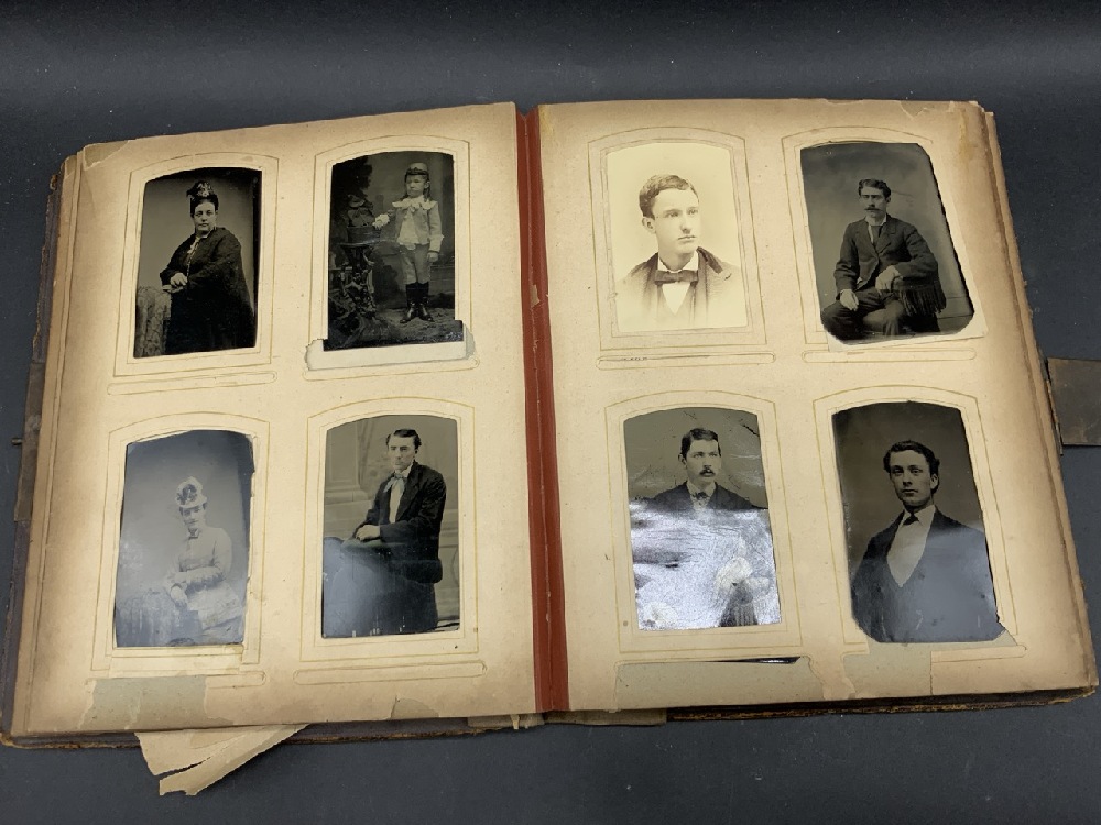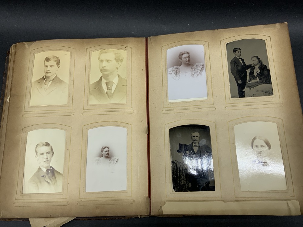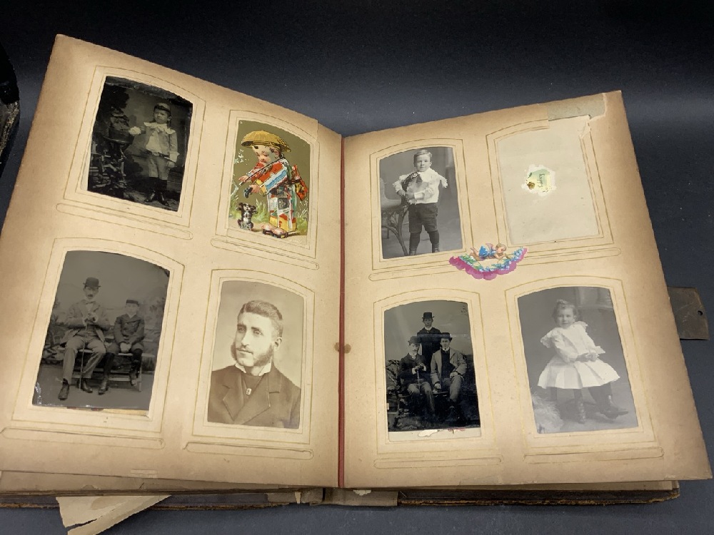 Antique Family Photo Album w/ over 90 Photographs & Tin Types Plus Many Die Cut Pieces
