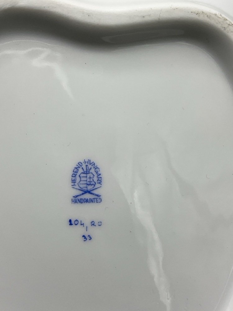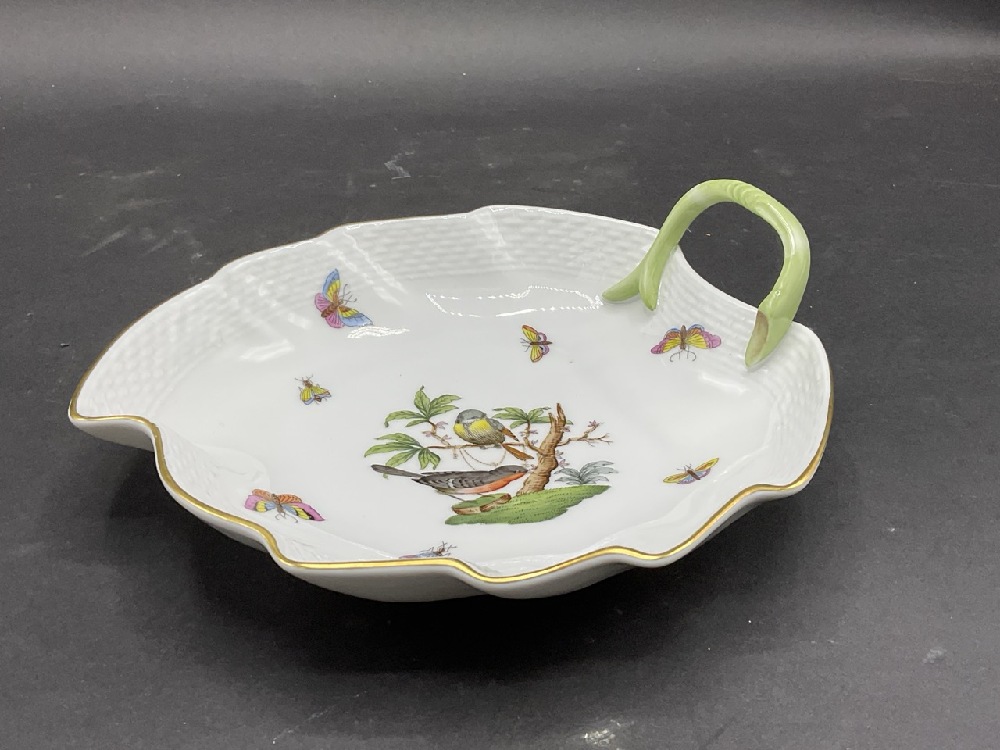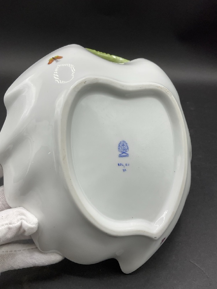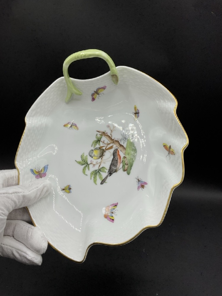 Herend Hungarian Porcelain Organic Form Dish with Handpainted Birds and Foliage. Excellent condition.