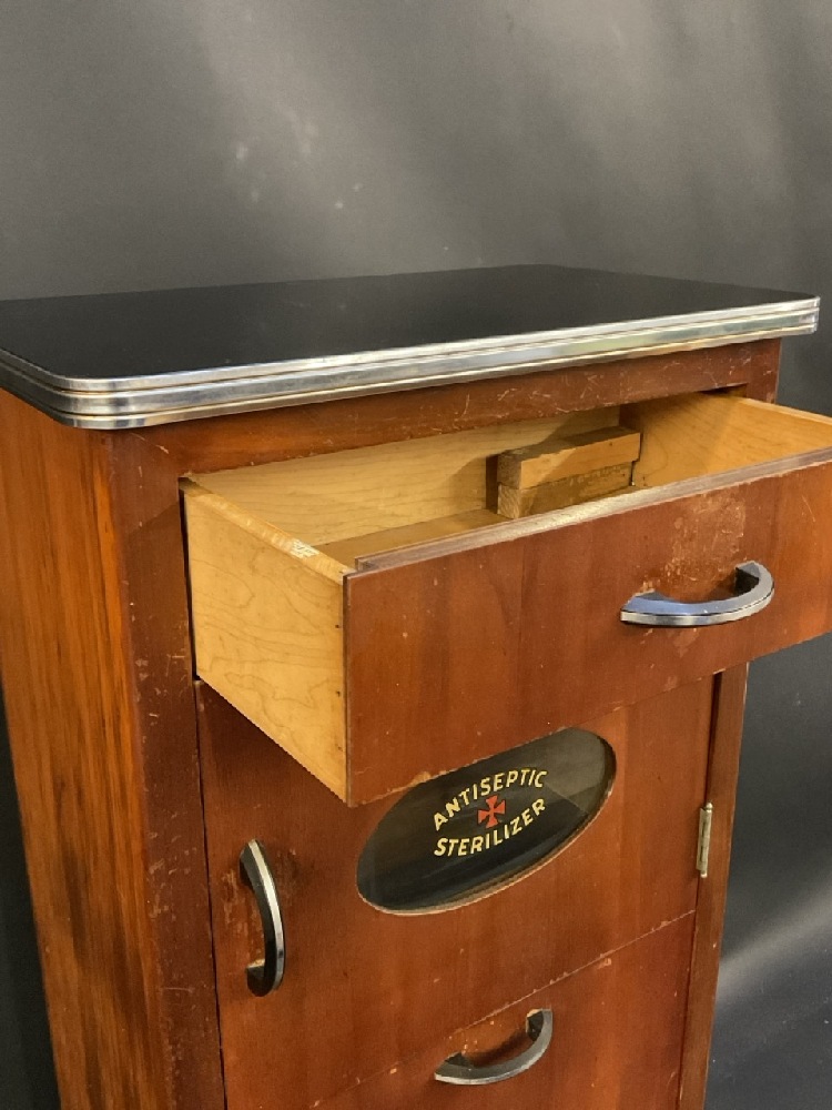 Theo A. Koch’s Co. New Haven CT Barber Shop Cabinet. Made for New York City Barber Shop c. 1948.