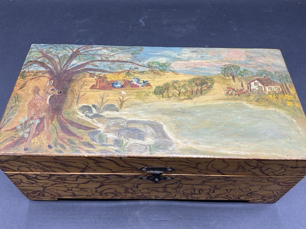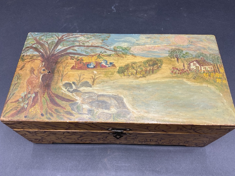 1940’s Folk Art Hand Painted Maple Box.