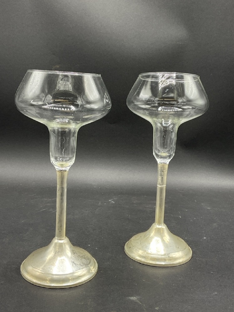 A Pair Weighted Sterling Silver Tulip Candleholders.