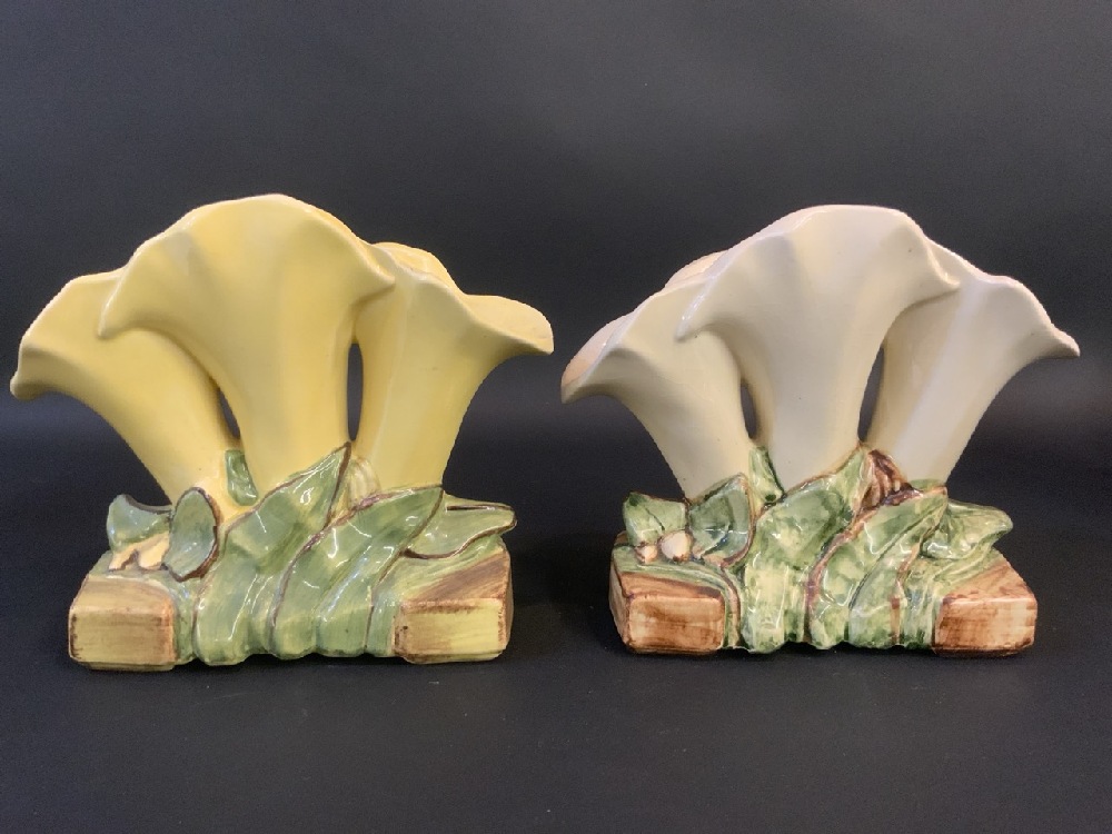 Pair of McCoy Yellow and White Calla Lily Vases.