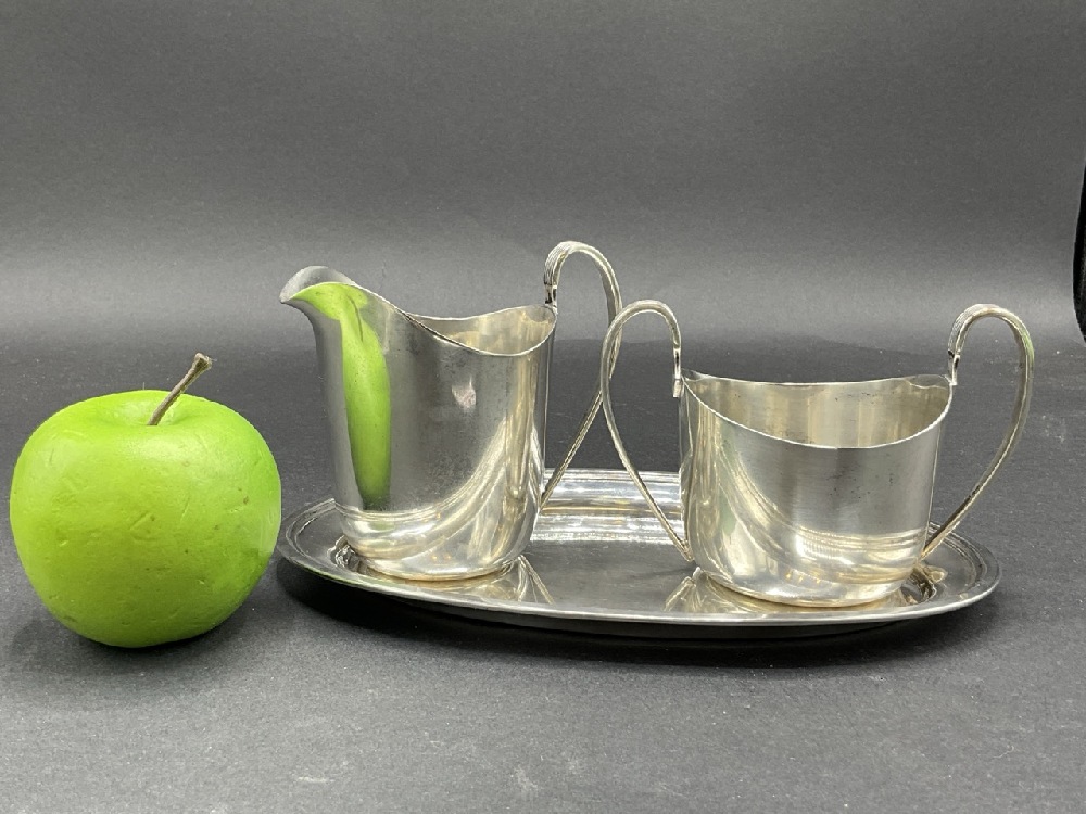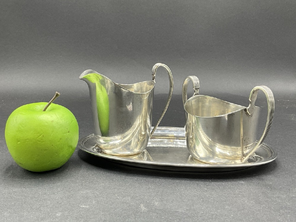Meriden Sterling Silver Sugar and Creamer w/ Underplate. Underplate made by Webster.