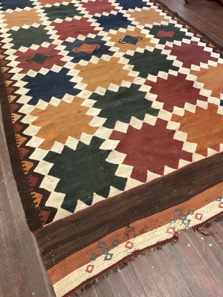 Handwoven Turkish Kilim Flat Weave Carpet.