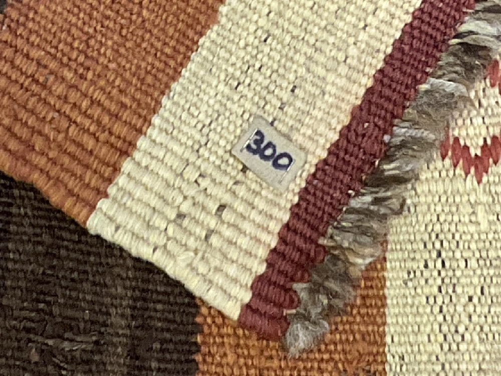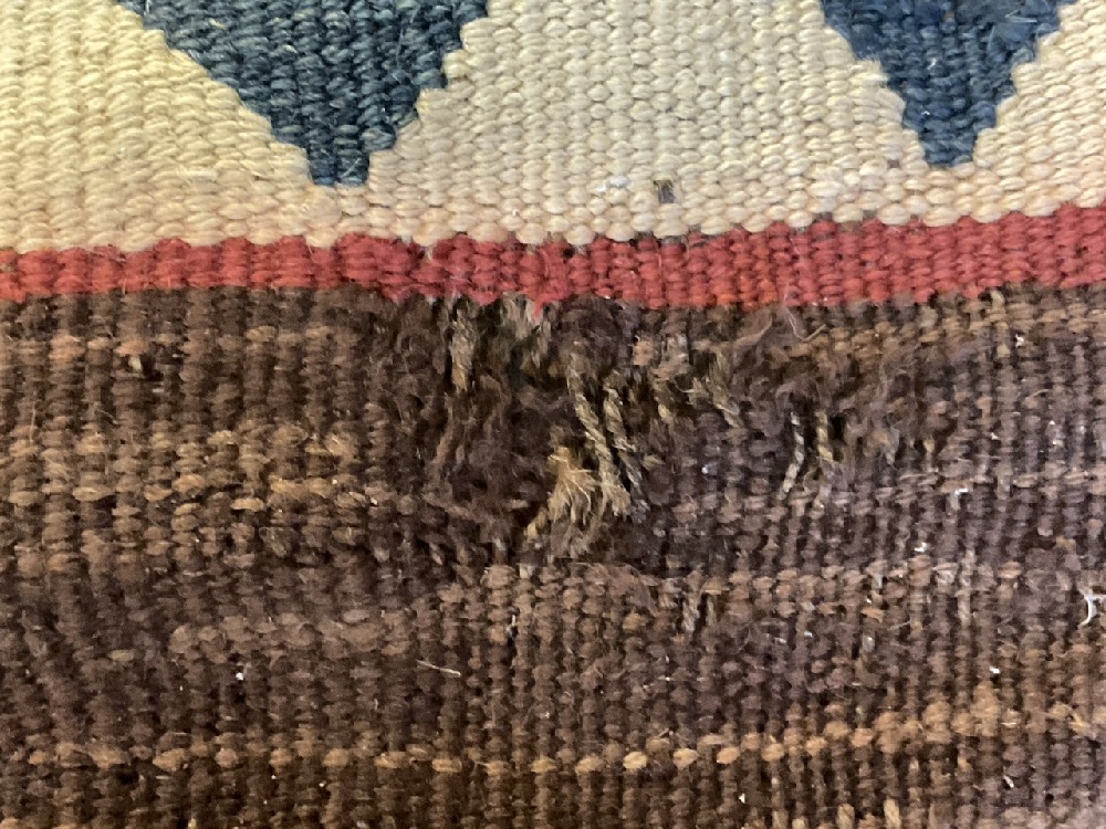 Condition: Fringe loss, several small yellow spots, a few holes on the one end.