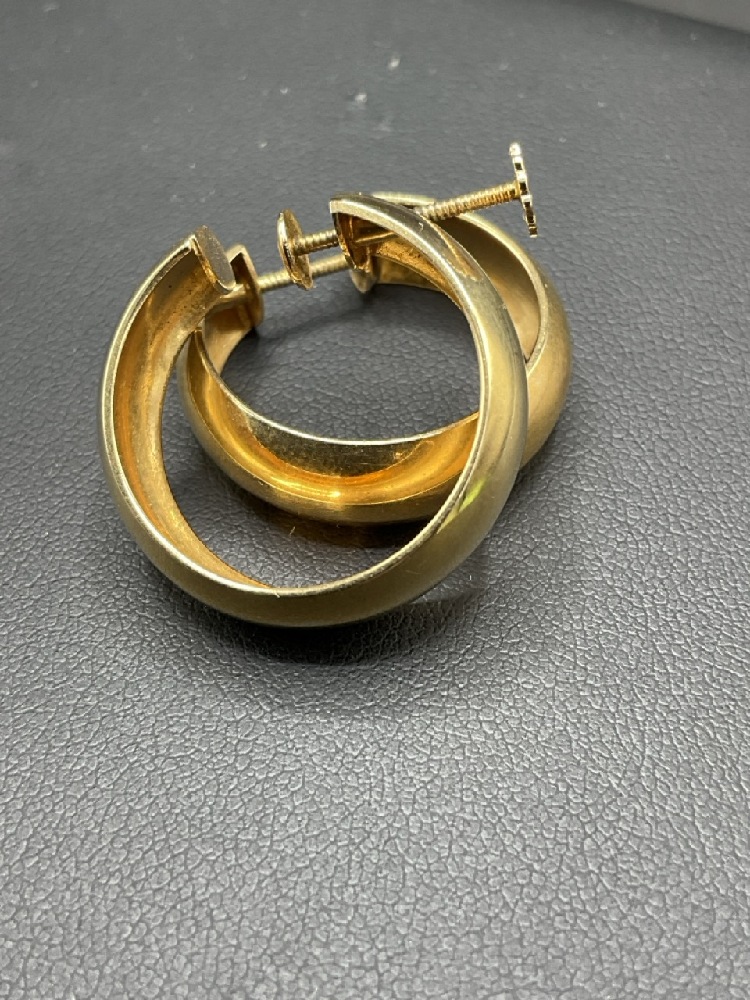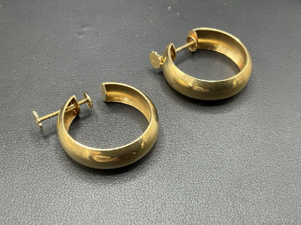 14K Yellow Gold Screwback Hoop Earrings.
