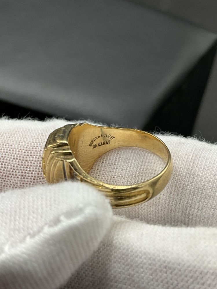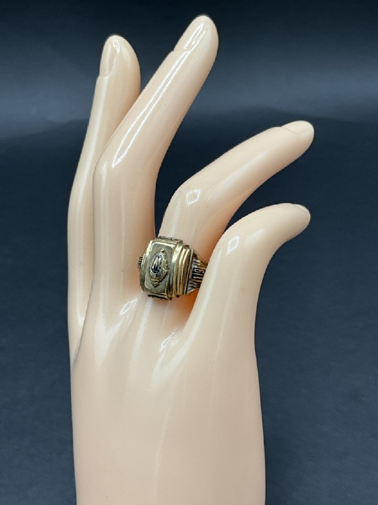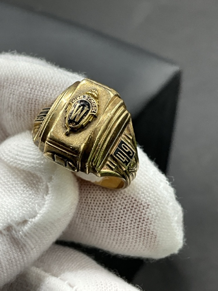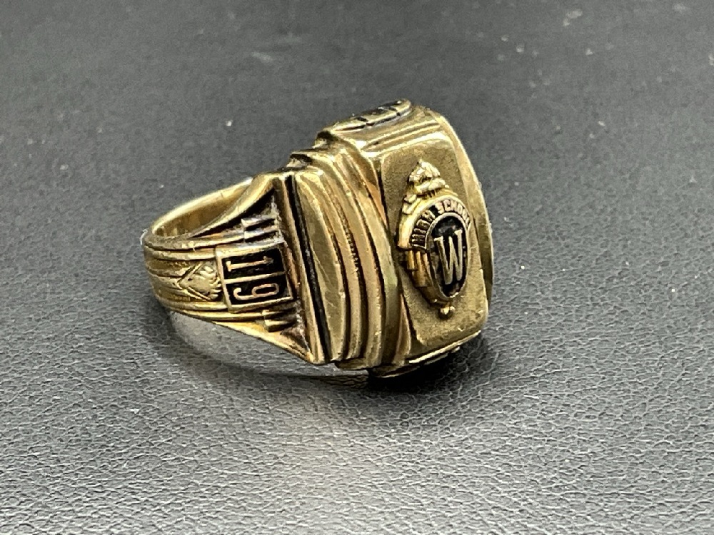 10K Yellow Gold 1949 "W" High School Class Ring. Made by Bieges & Just.