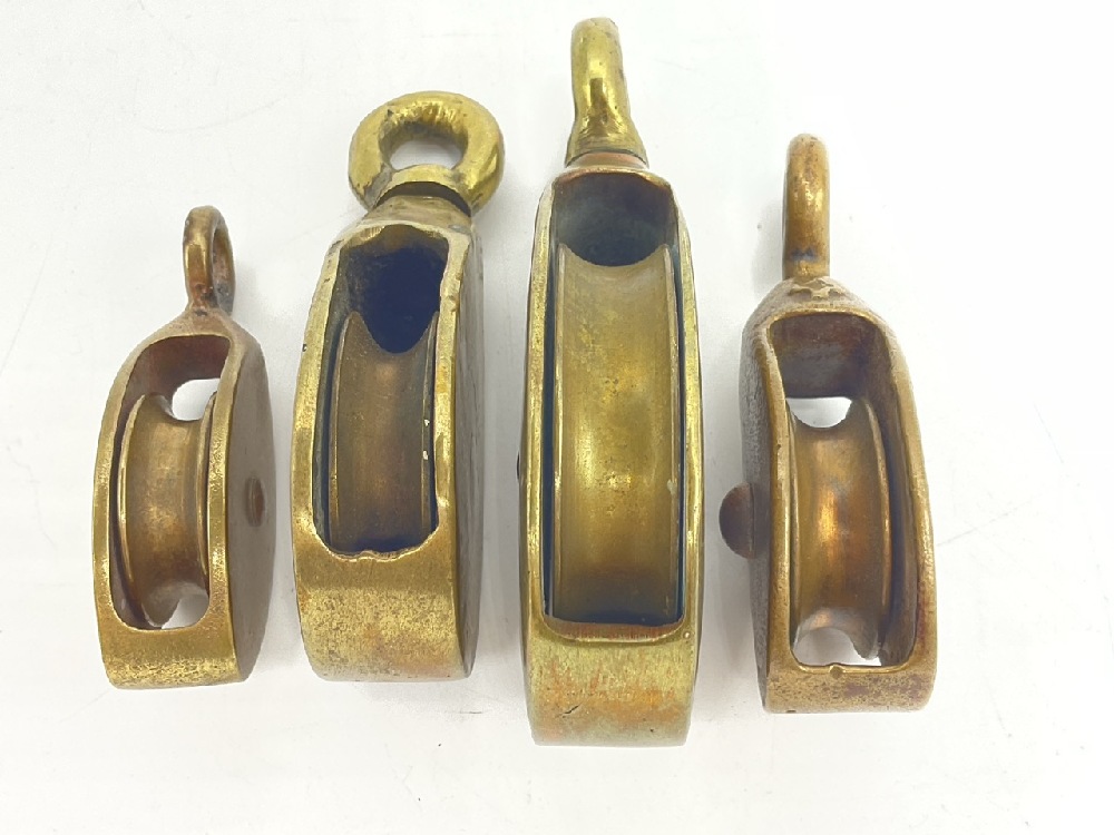 (4) Antique Brass Nautical Sailing Ship Pulleys.