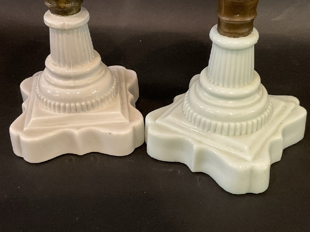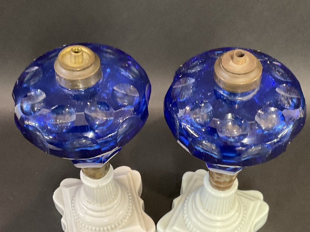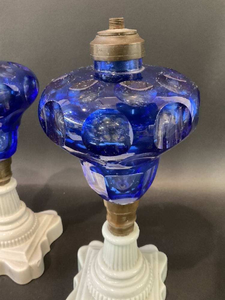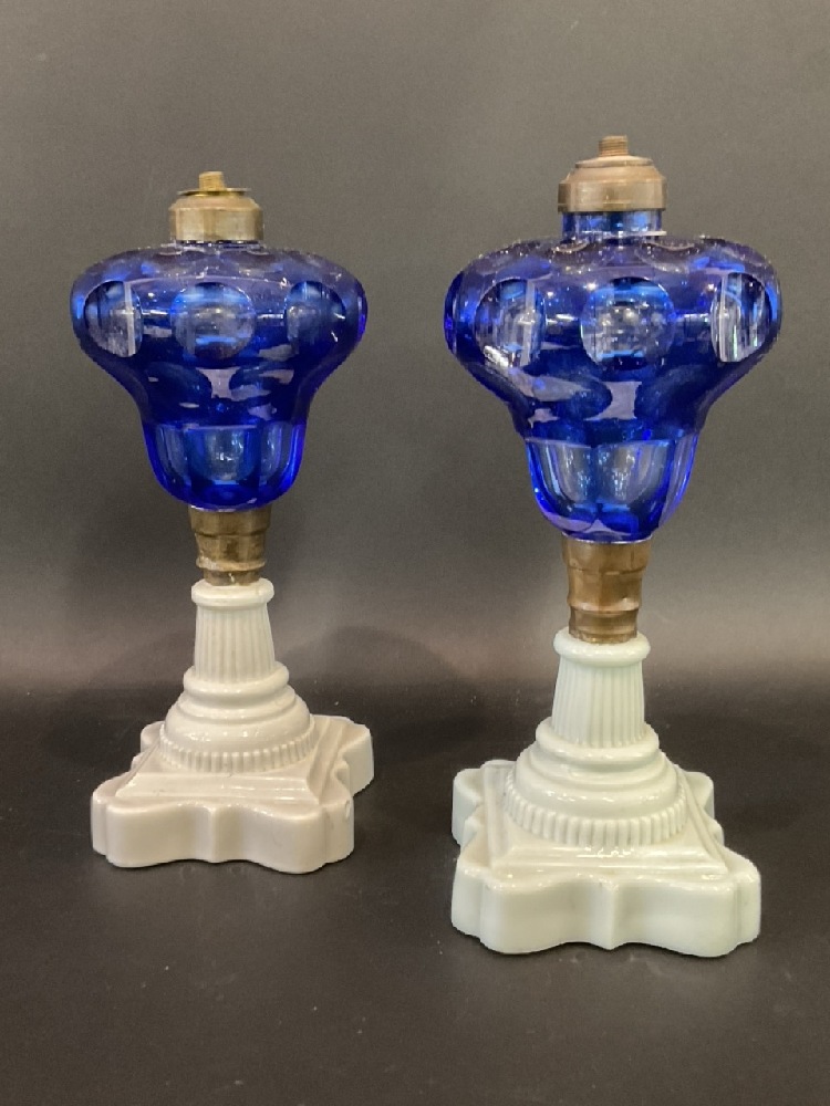 (2) Antique Cobalt Blue Cut to Clear & Milk Glass Oil Lamps.