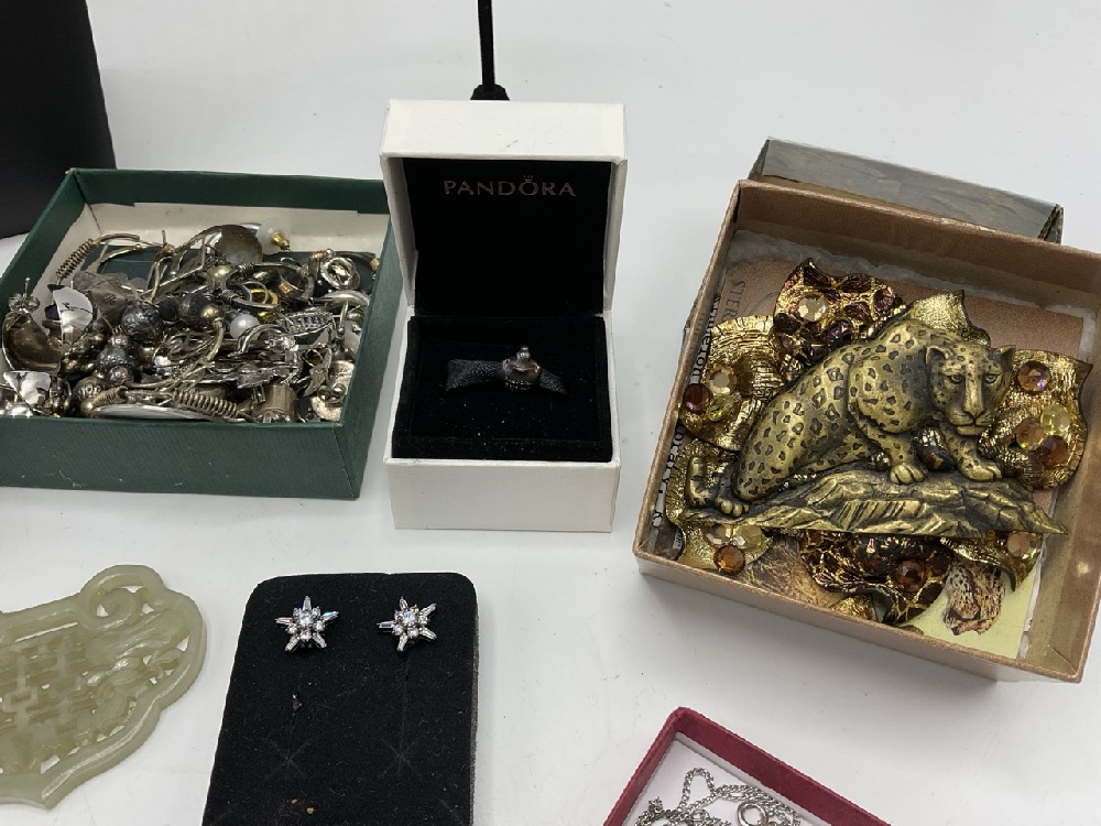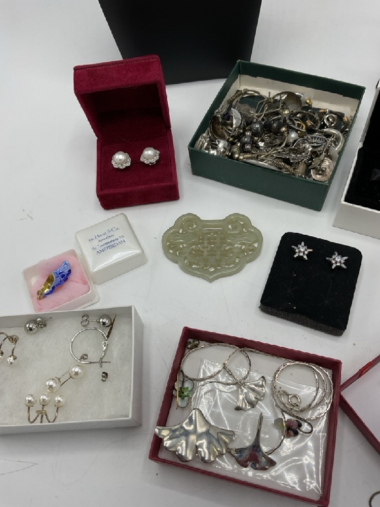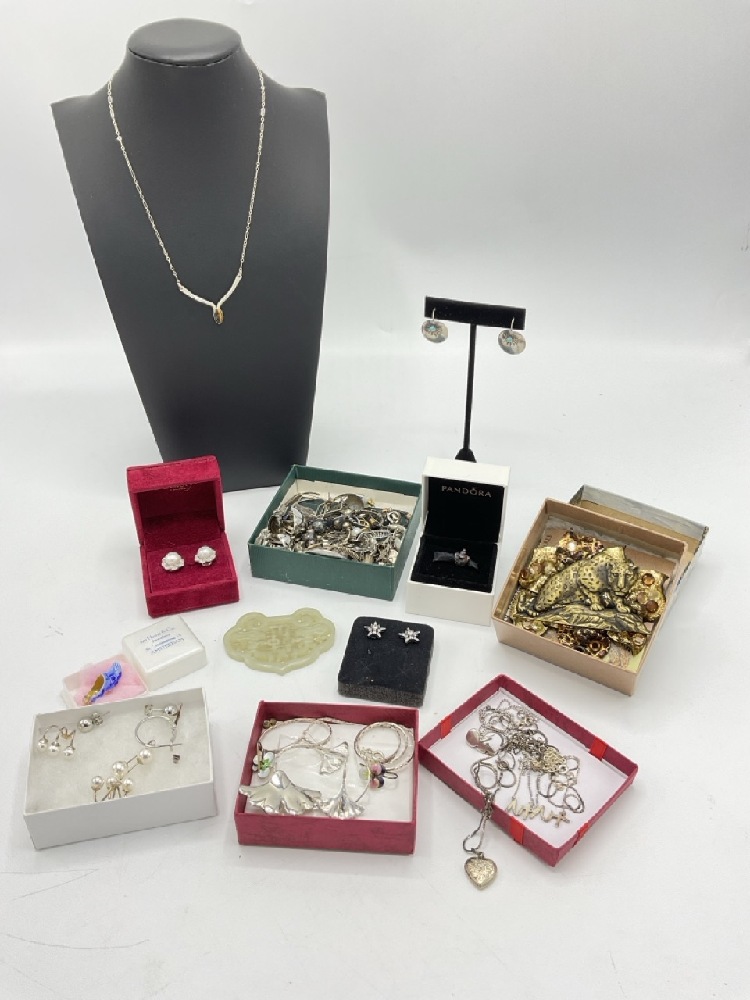 Estate Compiled Costume Jewelry group with sterling silver and jade pieces. As seen in photograph preview.