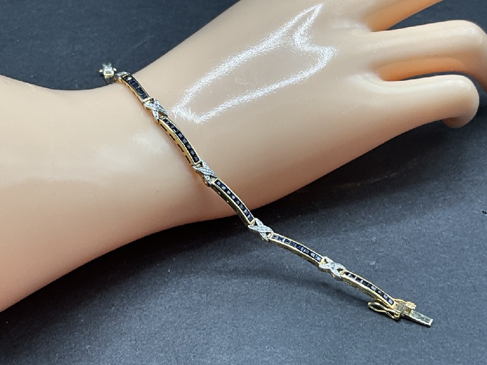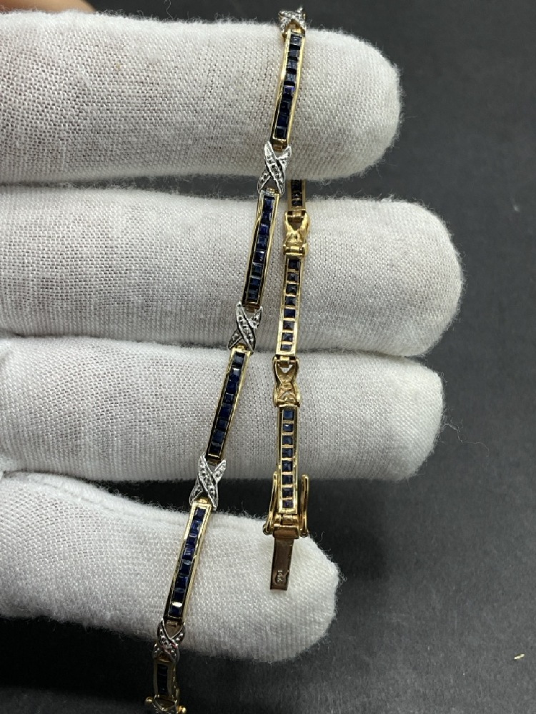 14K Yellow Gold Blue Sapphire and Diamond Bracelet.