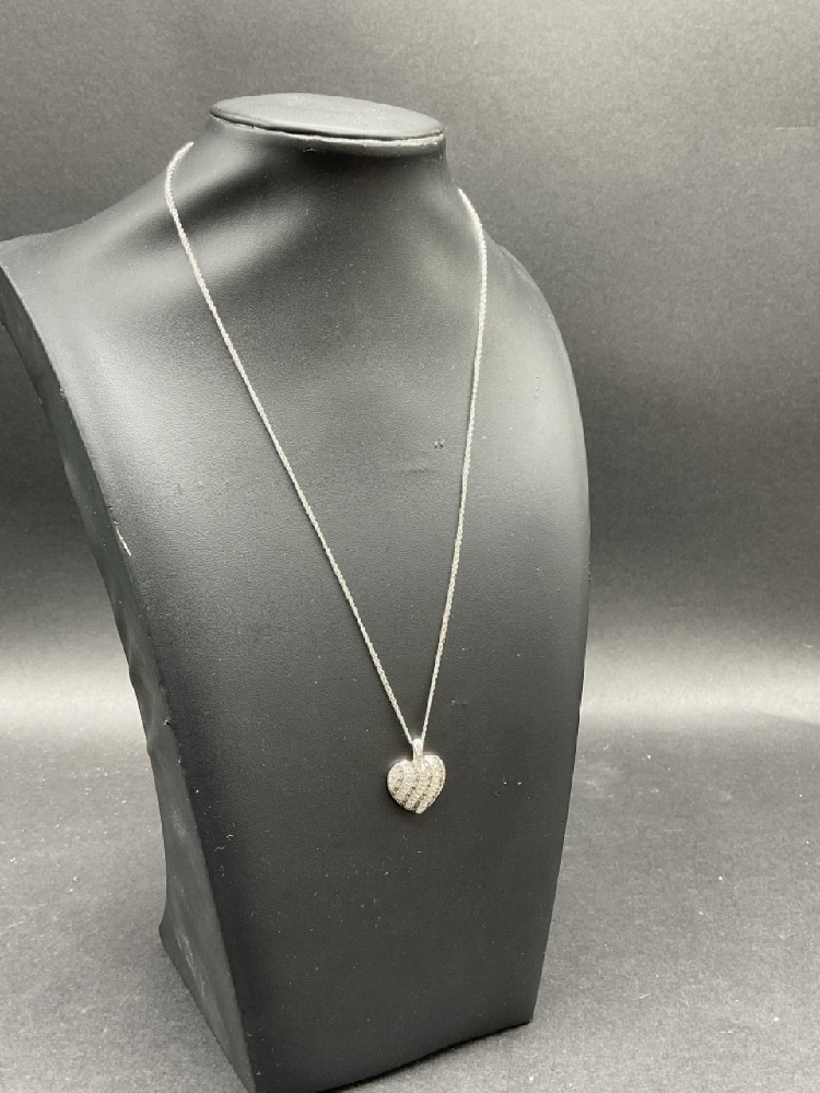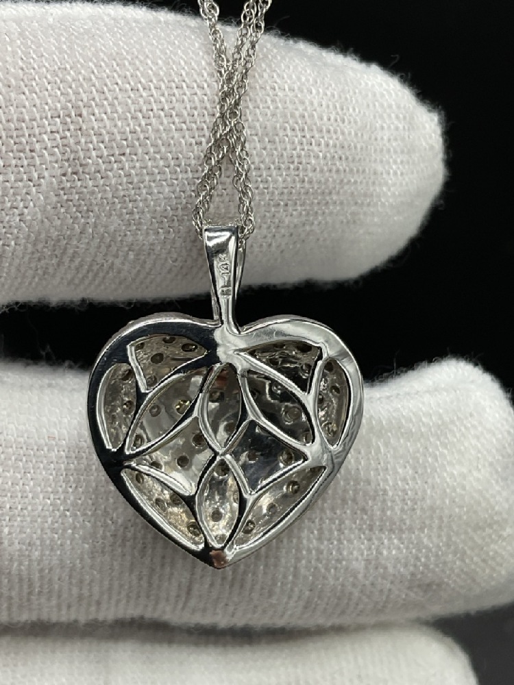 14K White Gold Diamond Heart Pendant Necklace.
