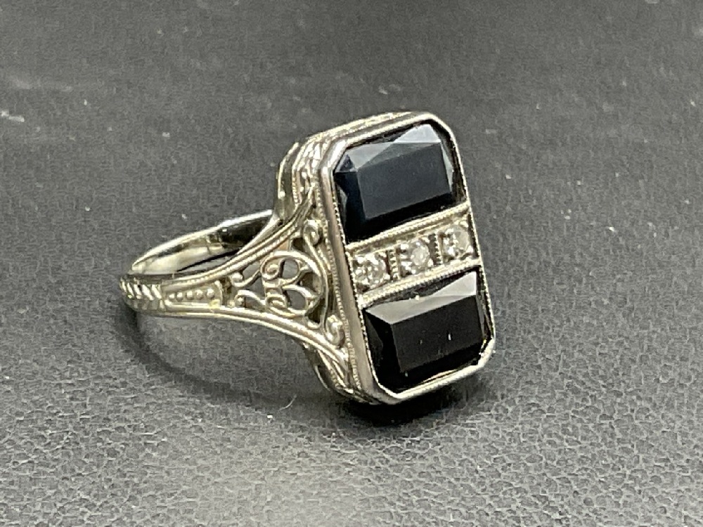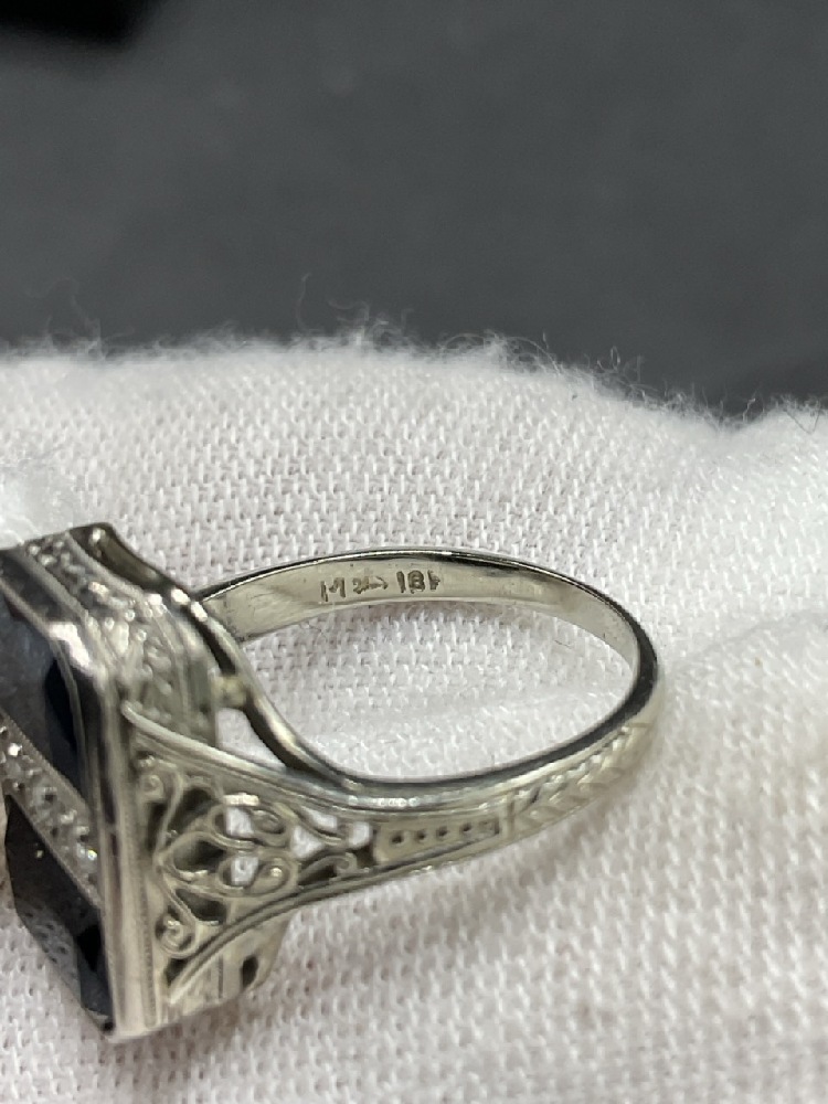 18K White Gold Sapphire and Diamond Ring.