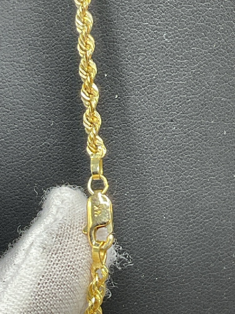 14K Yellow Gold Rope Chain Necklace.
