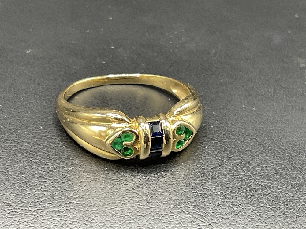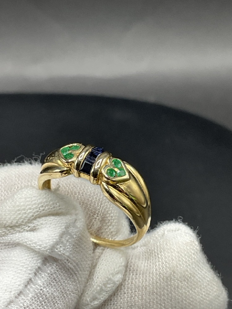 14K Yellow Gold Sapphire and Emeral Ring.