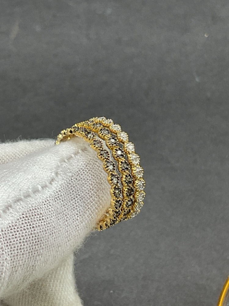 Three (3) 14K Diamond Stacking Rings.