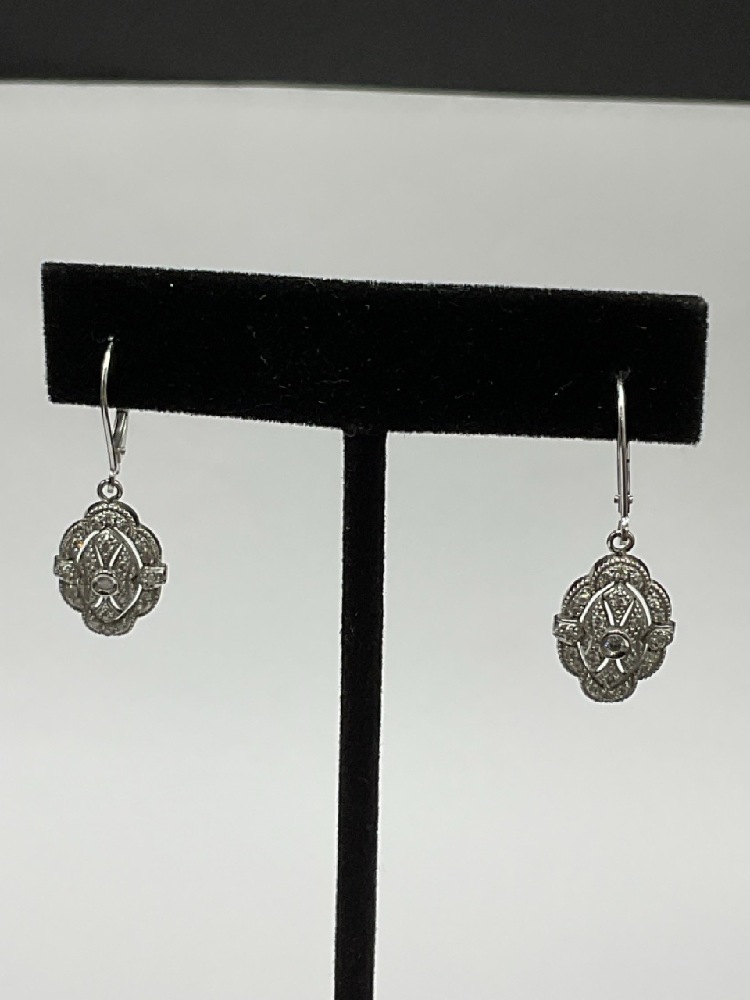 14K White Gold Diamond Earrings.