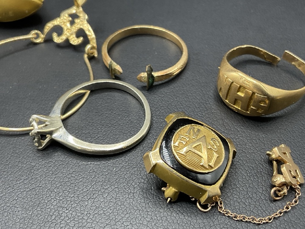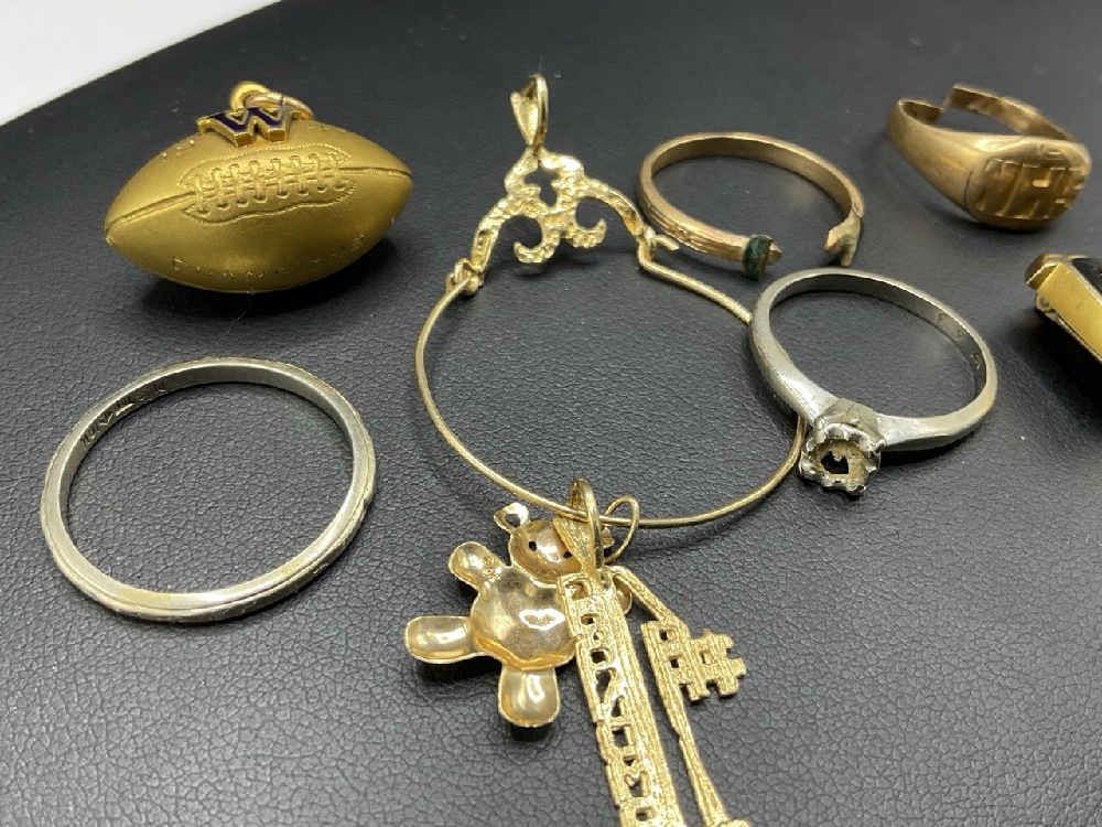 Compiled Estate Gold Jewelry. 10K, 14K and One 18K White Gold Wedding Band. As seen in photograph preview.