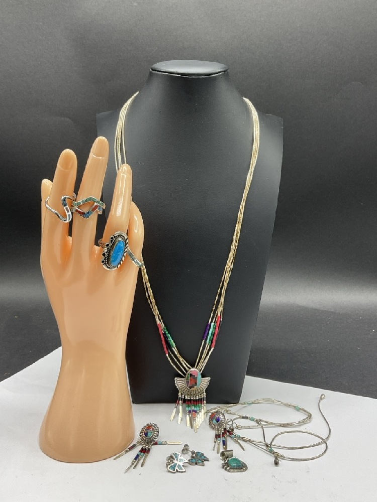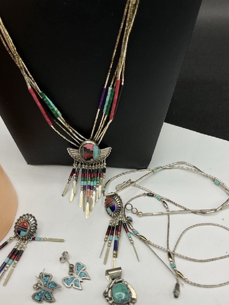 Compiled Estate Indian w/ Turquoise Jewelry Group.