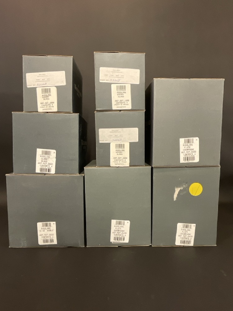 Estate Collection of Waterford Crystal “ Rosslare” Stemware in Original Boxes.